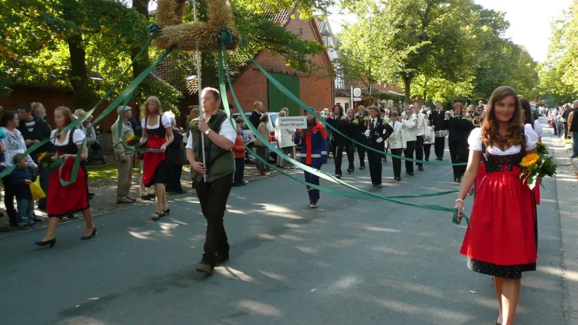 Erntepuppen aus Stroh zu Ehren des Getreides gibt es bis heute: Riesige Puppen aus Strohballen zieren viele Ortseingänge. Mancherorts binden die Erntehelfer aus den letzten Strohgarben eine Strohpuppe, die als Opfergabe auf dem Feld bleibt oder sogar verbrannt wird. Andere Bräuche sind der Erntedankumzug sowie Erntekrone oder –kranz. In diese Kronen oder Kränze werden übrigens am Gründonnerstag gesammelte Kränze aus Blumen und Kräutern eingeflochten. Sogar der Almabtrieb in den Bergen gehört zu den Erntebräuchen als Ausdruck des Dankes für gesundes Vieh. Volksfeste, Jahrmärkte und Hoffeste beziehen sich auf Erntedank.
