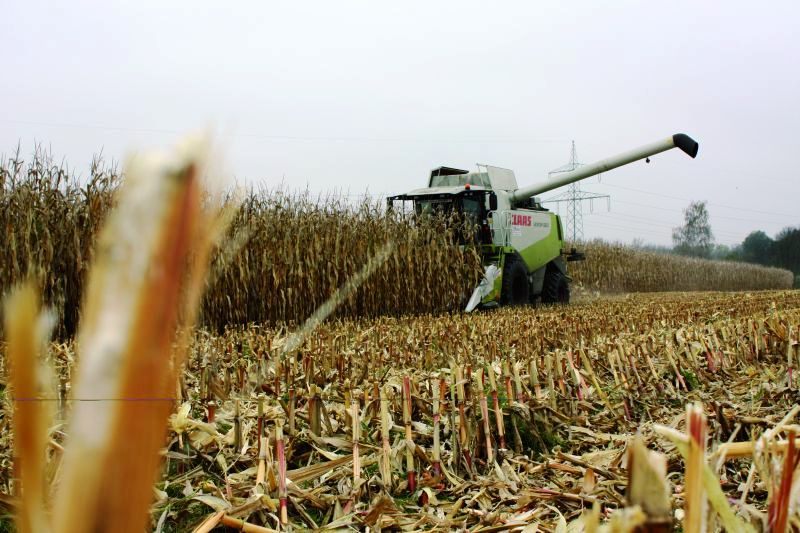 Der Erntezeitpunkt richtet sich nach dem Wassergehalt in den Körnern. Der sollte zumindest auf 30, besser auf 25 Prozent abgesunken sein, was meist erst im Oktober oder November der Fall ist. Höhere Wassergehalte erfordern eine kostspielige Trocknung auf weniger als 15 Prozent. Das kann den Anbau unwirtschaftlich machen. Die Ernte mit dem Mähdrescher ist deswegen gerade bei wechselhafter Herbstwitterung ein Wettlauf mit der Zeit. Die Erträge schwanken zwischen sieben und zwölf Tonnen pro Hektar und liegen damit etwas höher als beim Weizen.