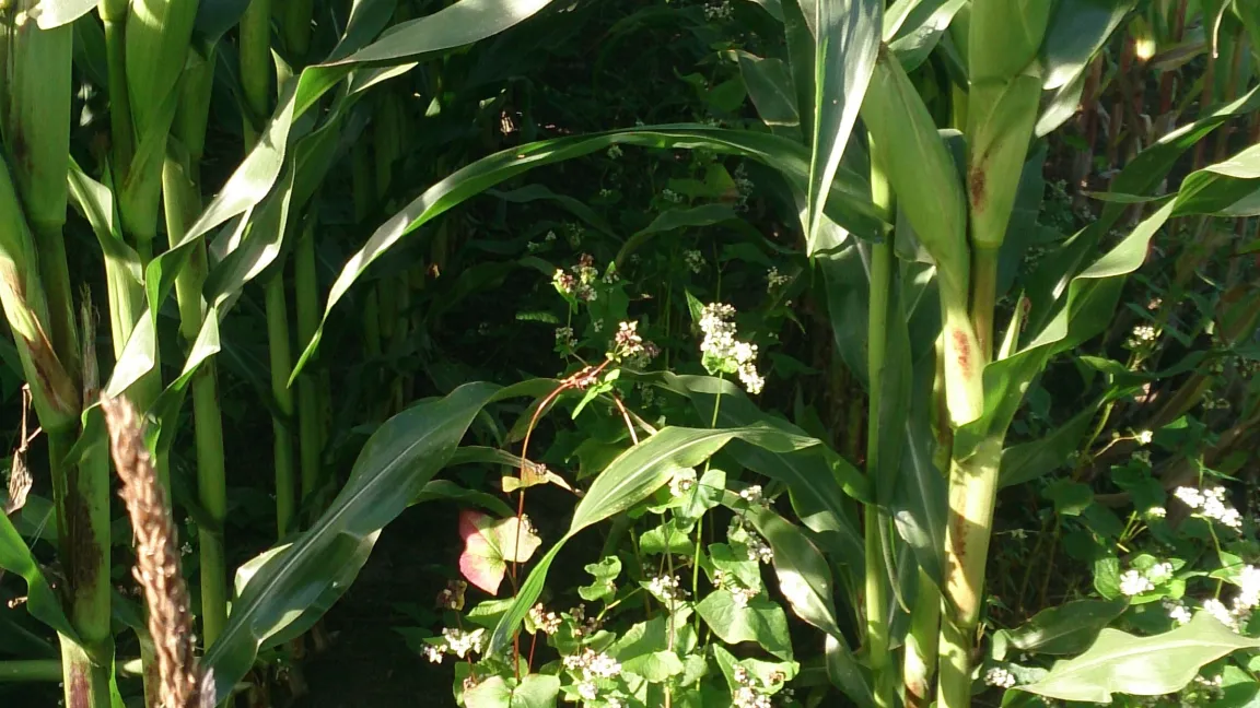 Auch eine vielfältige Fruchtfolge mit unterschiedlichen Kulturen, die den Boden stark durchwurzeln sowie eine ganzjährige Bedeckung des Bodens durch Zwischenfrüchte (= Pflanzen, die zwischen der Ernte und Neuansaat der Hauptkulturen angebaut werden) oder Untersaaten (= Pflanzen, die gleichzeitig mit den Hauptkulturen angebaut werden und so für eine rasche Bodenbedeckung sorgen) sorgt für eine Humusmehrung. Zwischenfrüchte und Untersaaten vermindern die Erosion und verhindern das Abfließen des Wassers in tiefere Bodenschichten. Die auf dem Acker verbleibende Biomasse trägt so zu einer positiven Kohlenstoffbilanz bei. Nicht zuletzt fördert das Einbringen von Pflanzenkohle in den Boden den Humusaufbau.