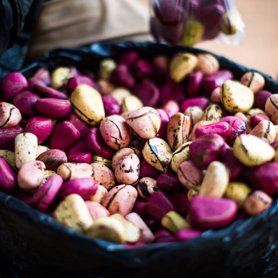 Kolanüsse, die Samen des Kolabaums, haben eine Größe von 2 bis 4 Zentimeter, sind unregelmäßig geformt und schwanken farblich zwischen beige, braun und rot. Foto: iStock