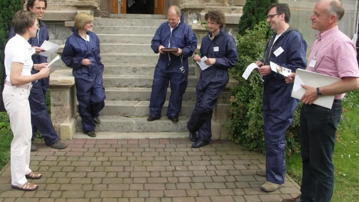 "Auf Wiedersehen Bilderbuch-Romantik, willkommen Landwirtschaft heute." Im Jahr 2010 werden wieder Lehrerinnen und Lehrer die Landwirtschaft erkunden und verschiedene Betriebe besuchen. Die Exkursionen des Industrieverbands Agrar (IVA) und der Fördergemeinschaft Nachhaltige Landwirtschaft (FNL) richten sich an Fachleiter und ihre Referendare. Die Lehrenden lernen dabei moderne Methoden der Exkursionsdidaktik am Beispiel Landwirtschaft - Stallgeruch inklusive.Ruthe bei Sarstedt im Juli 2009. Maik Böing, selbst Fachleiter für Erdkunde am Studienseminar Vettweiß, verteilt einen Packen Overalls. Die Fachleiterinnen und Fachleiter für Erdkunde und Biologie ziehen sich die Blaumänner in Einheitsgröße an und streifen anschließend noch Kunststoffüberzieher über ihre Schuhe. Die Gruppe will aber kein Kernkraftwerk besuchen, sondern einen Bauernhof: das Lehr- und Forschungsgut Ruthe der Tierärztlichen Hochschule Hannover. Böing erklärt den Sinn der Verkleidung: Die Teilnehmer sollen keine Krankheiten in die wertvollen Tierbestände einschleppen, damit sie weder die Gesundheit der Tiere gefährden noch die laufenden Versuche beeinträchtigen.