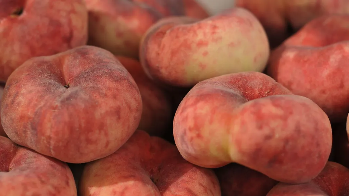 Eine glatte Schale hat hingegen eine beliebte Mutante des Pfirsichs; die Nektarine ist etwas kleiner und hat im Gegensatz zum Pfirsich einen fein säuerlichen Geschmack. Eine Gemeinsamkeit ist die runde, manchmal spitz zulaufende Form. Eher flachere Früchte mit kleineren Kernen haben die immer beliebteren Plattpfirsiche. Die Unterart schmeckt noch süßer und meist auch aromatischer als herkömmliche Pfirsiche.
