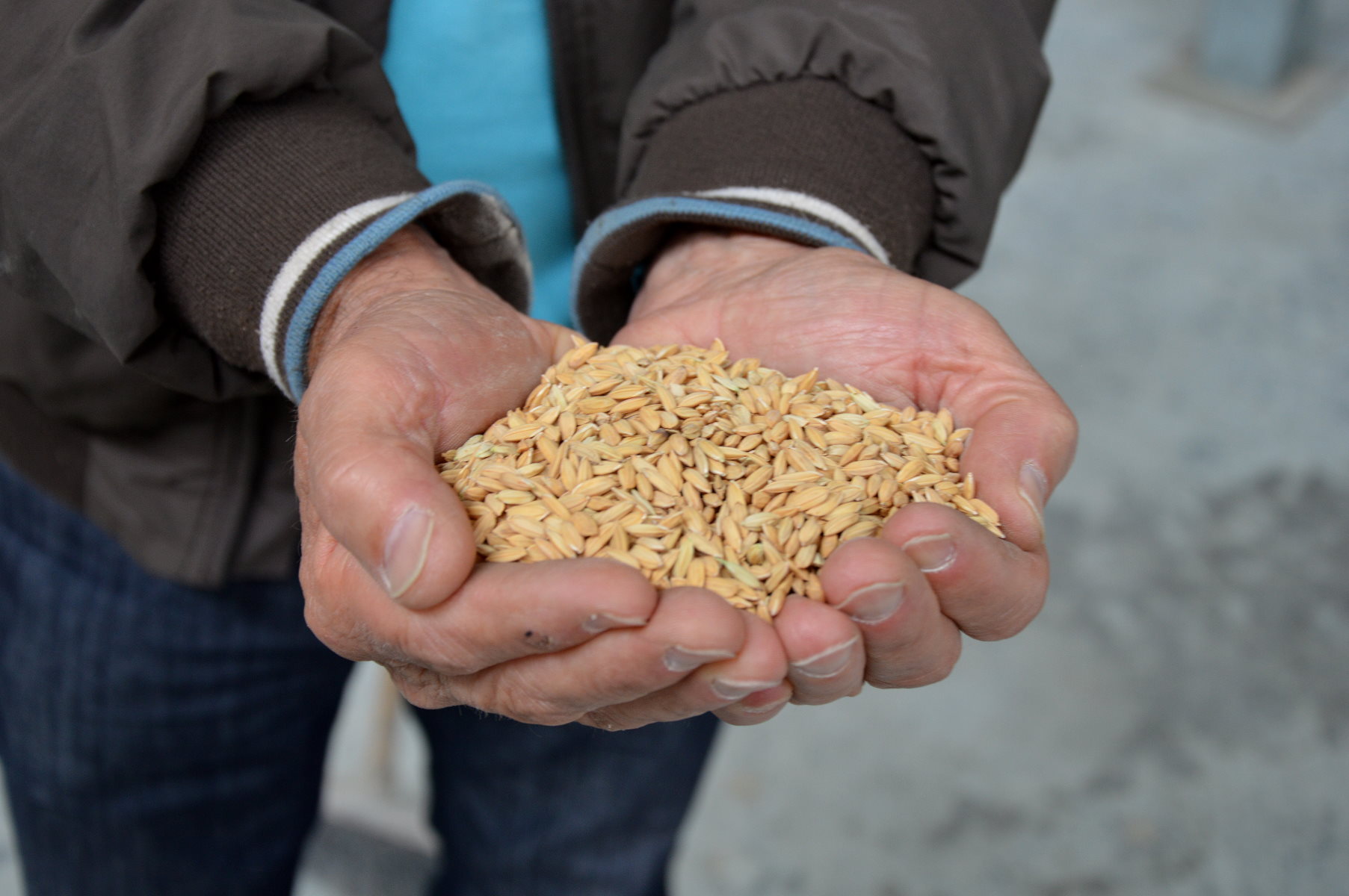Reifer Reis ist bräunlich und hat harte Körner. Auf engen Terrassen erfolgt die Ernte oft noch per Hand, im Flachland jedoch überwiegend mit dem Mähdrescher. Mit einer Kornfeuchte von 14 Prozent ist er lagerfähig.