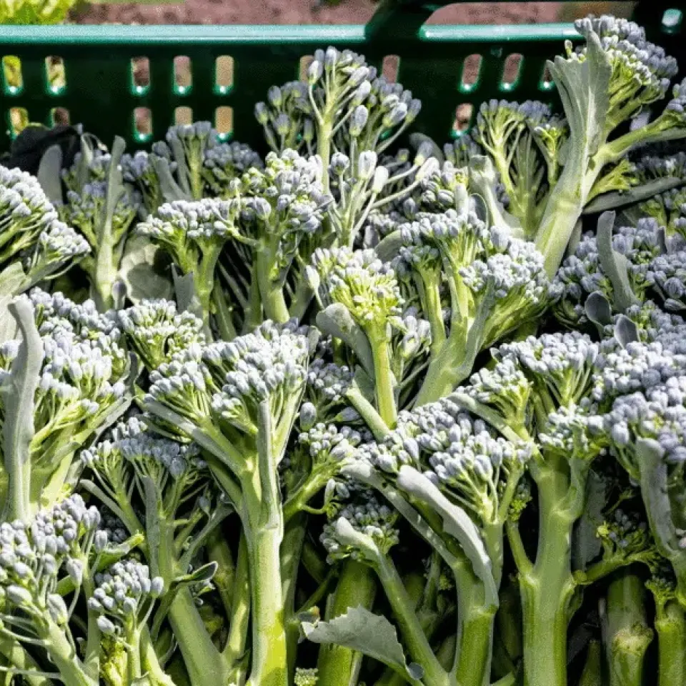 Frisch geernteter Spargelbrokkoli. Nur die reifen Triebe werden dabei von Erntehelfern aus der Pflanze herausgebrochen. Foto: Pfalzmarkt eG