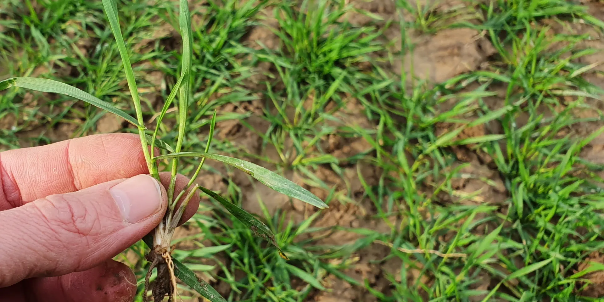 Winterweizen ist von Sommerweizen in den gleichen Entwicklungsstadien nicht zu unterscheiden. Wenn man im Februar aber so weit entwickelte Pflanzen findet, handelt es sich um Winterweizen. Foto: Matthias Wiedenau