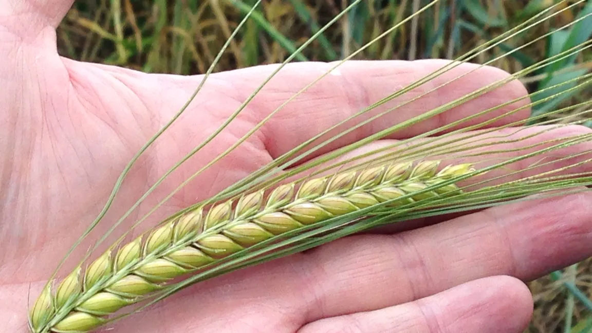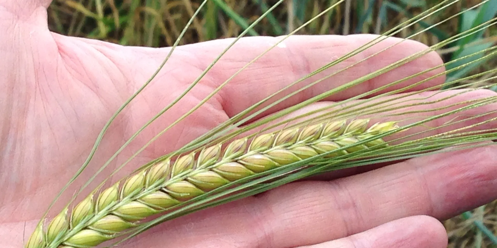 Die Ähren der Braugerstensorten sind meistens zweizeilig. Pro Ansatzstelle entwickelt sich ein Korn, das sich abwechselnd nach links und rechts ausrichtet. Foto: Braugersten Gemeinschaft