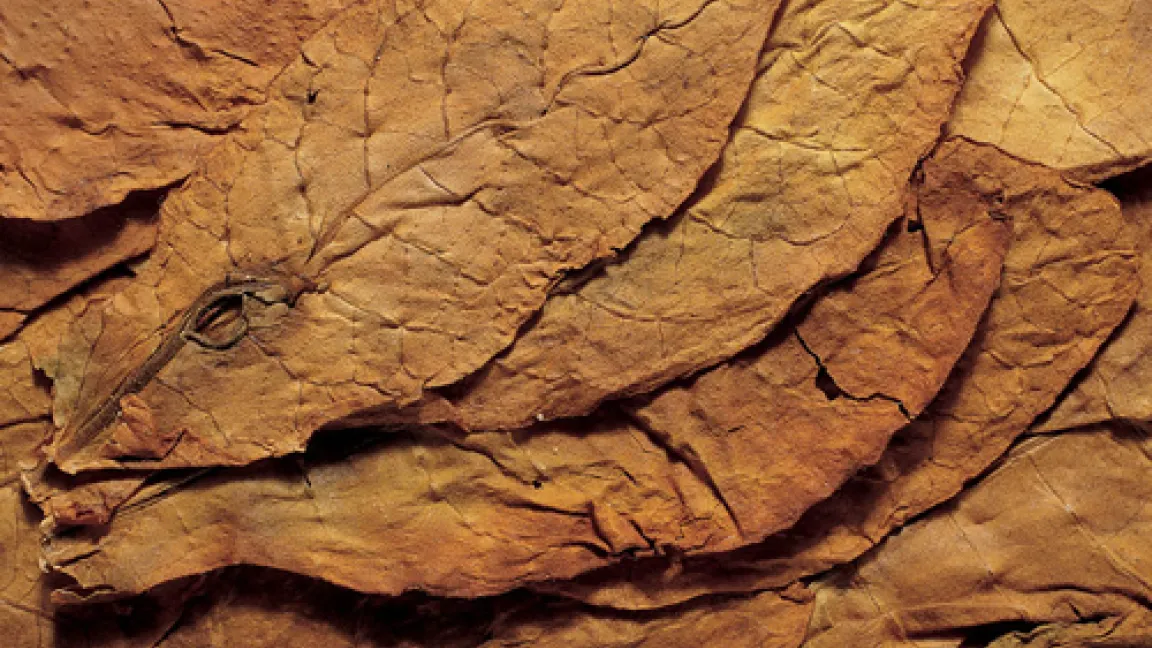 Von jeder Tabakpflanze werden 15 bis 18 Blätter geerntet. Das „Tabakbrechen“ erfolgt, sobald eine gelbliche Verfärbung das Abreifen der Blätter anzeigt. Da die Pflanzen von unten nach oben abreifen, beginnt die Ernte bei den untersten Blättern, den so genannten Grumpen. Je nach Tabaksorte werden in einem Arbeitsgang zwei bis fünf Blätter geerntet. So zieht sich das traditionelle Tabakbrechen, das in Deutschland immer noch überwiegt, bis zu sechs Wochen hin. Geerntet wird von Hand oder mit halbautomatischen Erntemaschinen. Es ist aber abzusehen, dass sich aus ökonomischen Gründen künftig immer mehr so genannte Vollernter durchsetzen, mit denen maschinell geerntet werden kann. In Deutschland beträgt die Ausbeute 25 bis 35 Doppelzentner getrocknete Tabakblätter pro Hektar. Nach der Ernte muss der Landwirt die Blätter schonend trocknen. Aufwändige Trocknung Die fachgerechte Trocknung des Ernteguts ist viel mehr als nur der Entzug von Wasser. Während dieser Zeit laufen vielfältige Stoffwechselprozesse in den Blättern ab. Je nach Sorte und Land trocknen die Tabakbauern ihre Ernte an der Sonne, über dem Feuer, in Trocknungsscheunen oder in speziellen Kammern. Für die Trocknung in Scheunen sind 18 bis 32 Grad Celsius bei einer Luftfeuchtigkeit von 65 bis 70 Prozent ideal. Hier hängen die aufgefädelten Blätter in dicken Paketen an langen Latten, die so aufgehängt sind, dass die Luft ausreichend zirkulieren kann.