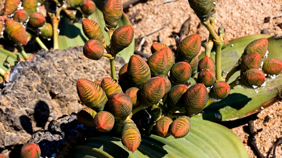 Welche Pflanze gibt es männlich und weiblich, ist 1500 Jahre alt und kommt in der Wüste Namib in der Nähe von Swakobmund vor? Würde eine Frage in einem Quiz so lauten, wüssten wohl nur die wenigsten Menschen die Antwort. Es ist die Welwitschie. Die Wüstenpflanze kommt unter anderem im Wappen Namibias vor, dessen Nationalpflanze sie ist. Sie ist äußert angepasst an die widrigen Lebensumstände, wie sie in der Wüste herrschen.Hoch spezialisiert, so könnte man die Anpassung der Welwitschie (Welwitschia mirabilis) an die harten Bedingungen der in Namibia und Süd-Angola liegenden Namib-Wüste am besten beschreiben. Entdeckt hat die Pflanze der österreichische Arzt und Botaniker Friedrich Welwitsch 1859 auf einer Reise durch Angola. Von ihm hat sie daher auch ihren deutschen Namen bekommen. Bei den Einheimischen wurde sie Tumboa oder n'tumbo genannt, was „Stumpf“ bedeutet. Das Hirtenvolk der Herero nennt sie übersetzt übrigens „Wüstenzwiebel“, da früher die Menschen ihr Mark roh oder gebraten gegessen haben. Zu ihren tierischen Liebhabern gehören Oryx-Antilopen, Nashörner oder Zebras, auch sie haben die Pflanze zum Fressen gern.
