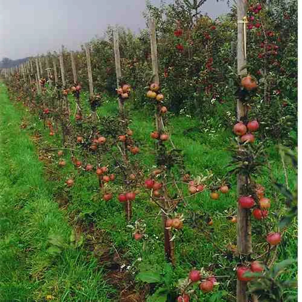 Die modernen Niederstammanlagen gehen auf Gordon McLean aus Kingston, England, zurück. Er entwickelte das Pillar-Dichtpflanzungssystem, bei dem die Fruchtäste ohne Seitenastbildung direkt am etwa 2 Meter hohen Stamm ansetzen. In den heutigen Anlagen werden im Vergleich zu früher 10- bis 20-mal so viele Bäume je Hektar gepflanzt. Dadurch entstehen zunächst zwar hohe Kosten von über 30 000 Euro je Hektar. Aber sie werden in Kauf genommen, um später alle Maßnahmen der Rationalisierung ausschöpfen zu können. Zum Beispiel das Pflücken der Äpfel vom Boden aus, ohne Leiter.