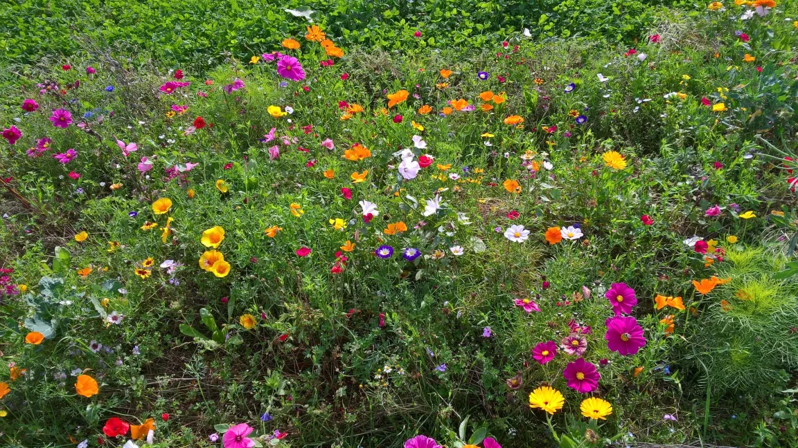 Hier Blühstreifen, da Steingärten