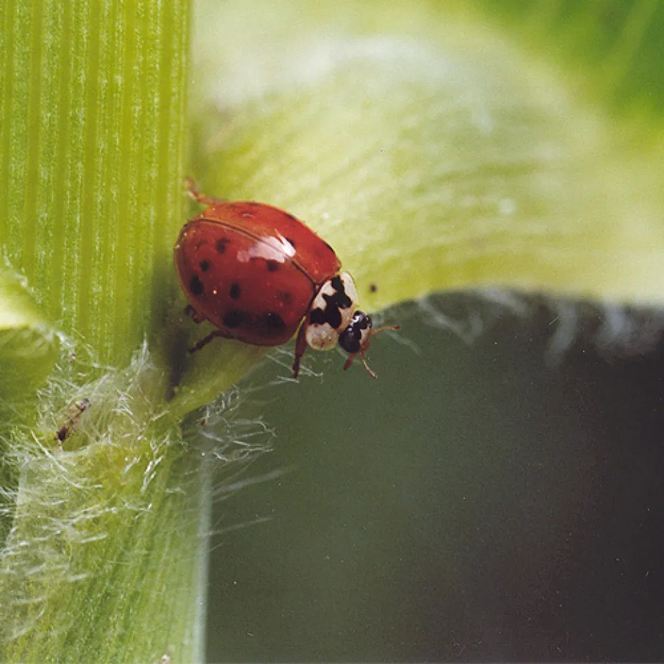 Obwohl der Asiatische Marienkäfer (Harmonia axyrides) Blattläuse vertilgt, ist er bei französischen Weinbauern nicht immer gern gesehen.