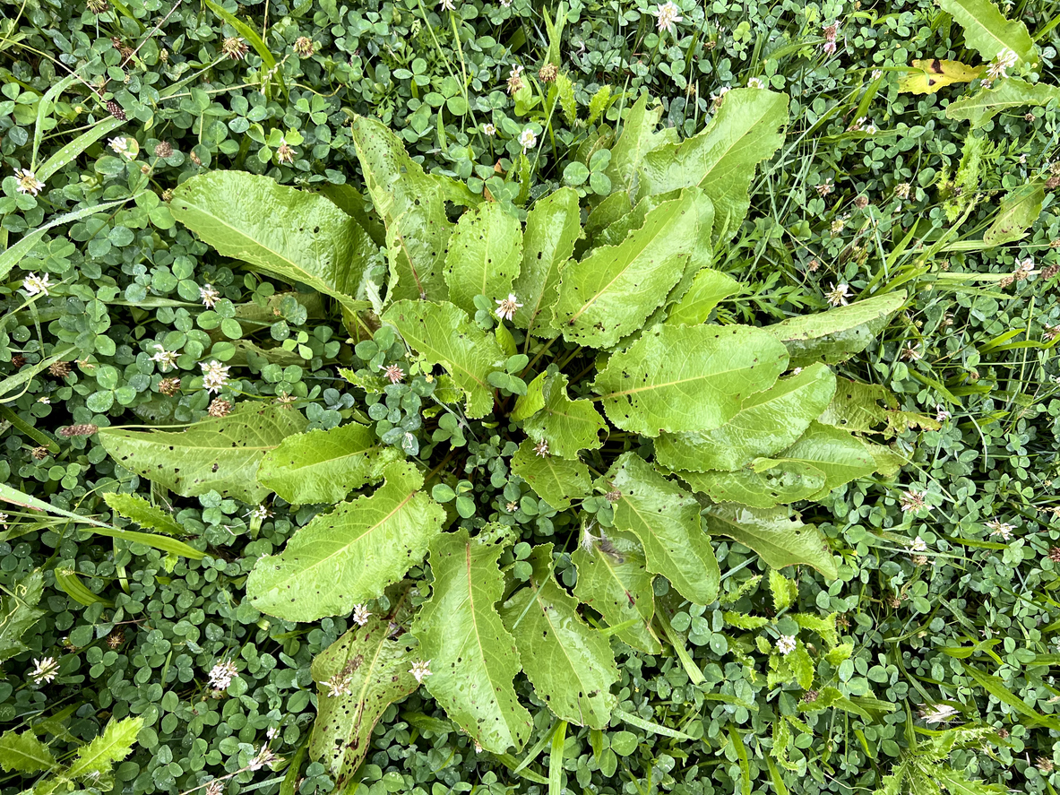 Der Stumpfblättrige Ampfer Rumex obtusifolius, von den Landwirten auch Breitblättriger Ampfer oder Grind-Ampfer genannt, ist eines der verhasstesten Grünlandunkräuter in der Landwirtschaft. Ein Futterwert ist praktisch nicht vorhanden – im Gegenteil, er ist sogar schwach giftig, sodass er bei Rinder- und Pferdehaltern nicht beliebt ist. Das einjährige, aber sehr ausdauernde Wurzelunkraut wächst auf Ruderalflächen, Ödland und Schuttplätzen, an Wegrändern und Gräben und fühlt sich vor allem an feuchten Standorten auf den Wiesen pudelwohl. Sonne oder Halbschatten ist ihm dabei egal; aber als „Stickstoffzeiger“ zeigt der Ampfer an, dass der Boden reich an diesem Pflanzennährstoff ist.