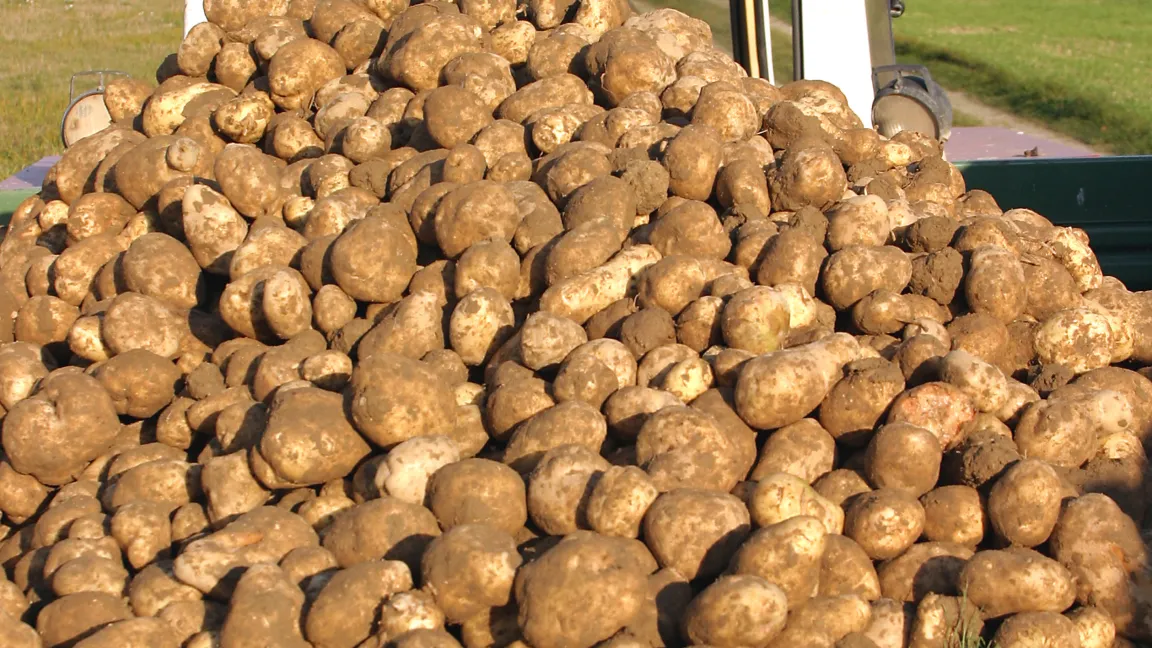Eine intakte Kartoffelschale ist ein wirkungsvoller Schutz gegen Schaderreger. Sie darf bei der Ernte nach Möglichkeit keinen Schaden nehmen. Dafür stellen Landwirte ihre Erntemaschinen fachmännisch ein und vermeiden große Fallhöhen zum Beispiel beim Überladen vom Roder auf Transportfahrzeuge. Auch sollte man Kartoffeln, die eingelagert werden, erst dann ernten, wenn sie tatsächlich reif sind und eine feste Schale besitzen. Zum Rodezeitpunkt darf die Knollentemperatur nicht unter zehn Grad Celsius liegen, sonst sind die Knollen zu stoßempfindlich. Profis gönnen ihren Kartoffeln direkt nach der Einlagerung eine Wundheilungsphase. In dieser Zeit trocknen die Knollen vollständig ab und schließen kleinere Verletzungen (Verkorken der Schale). Dann wird die Lagertemperatur je nach Sorte auf vier bis sieben Grad Celsius gesenkt. Mit der Temperatur sinkt auch die Entwicklungsgeschwindigkeit der Schaderreger. So „artgerecht“ gelagert bleiben die Kartoffeln mehr als ein halbes Jahr lang frisch.