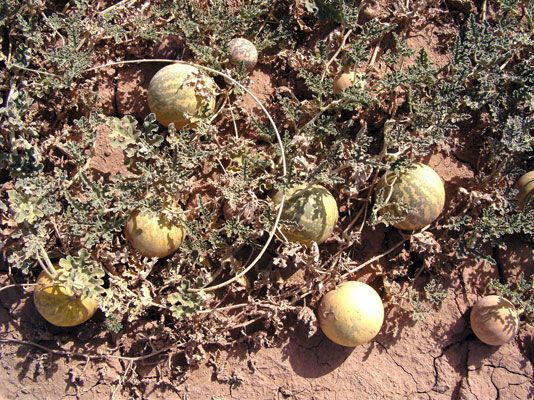 Die Koloquinte wurde und wird vor allem im Mittelmeergebiet, in Afrika und Indien als Heilpflanze angebaut. Man verwendet das getrocknete Fruchtfleisch. Ihre über einen Meter langen Pfahlwurzeln versorgen die Pflanze mit Wasser auch aus tieferen Bodenschichten. Gegen Ende Februar bildet sie ein bis zwei Meter lange am Boden liegende Triebe. Aus den Blattachseln wachsen schlanke Ranken mit hand- oder herzförmigen Blättern. Die Blüten haben einen glockigen Kelch mit radförmiger Krone. Von Oktober bis in den Februar hinein kann geerntet werden: Die kugelrunden Früchte sind etwas größer als Äpfel. Unreife sind grün, reife gelb mit grüner Maserung. Das helle Fruchtfleisch ist saftig, und seine Konsistenz ähnelt der von Wassermelonen. Es schmeckt aber unangenehm bitter.