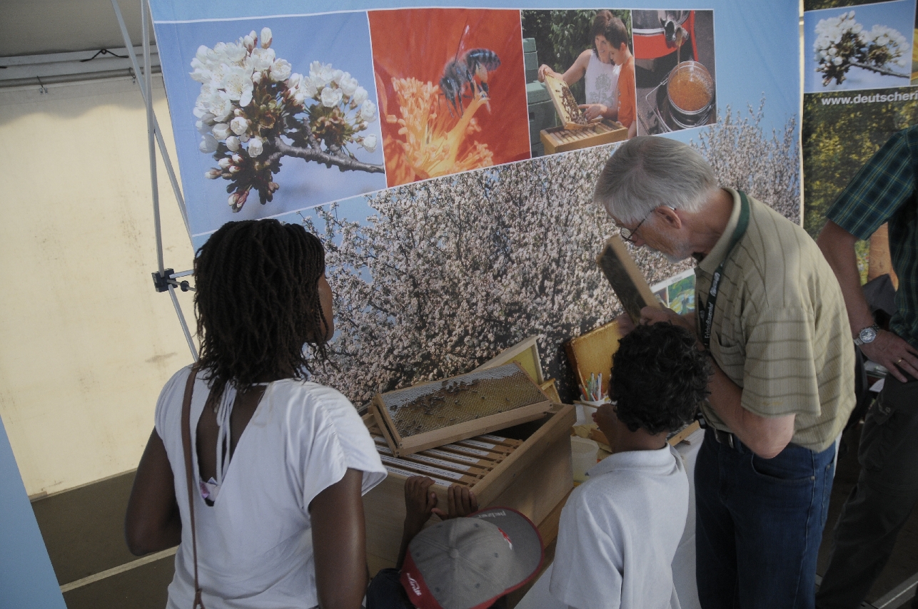 Gleich nebenan erwartete die Besucher ein Zelt der Initiative "Innovation & Naturhaushalt" mit vielen Informationen zur nachhaltigen Landwirtschaft. Hauptdarsteller dieses Standes war die Honigbiene, eines der wichtigsten Nutztiere in der Landwirtschaft. „Jung und Alt aus Köln und Umgebung hatten großes Interesse nicht nur an der Imkerei, sondern auch an den vielen praktischen Beiträgen der Landwirte zur Bienengesundheit und zu Förderung und Erhalt der Artenvielfalt im Allgemeinen", lautete das erfreuliche Resumee der Leiterin der Initiative, Kerstin Krohn. Der Renner am Stand: ein selbst kreierter Honig-Fitness-Trunk.