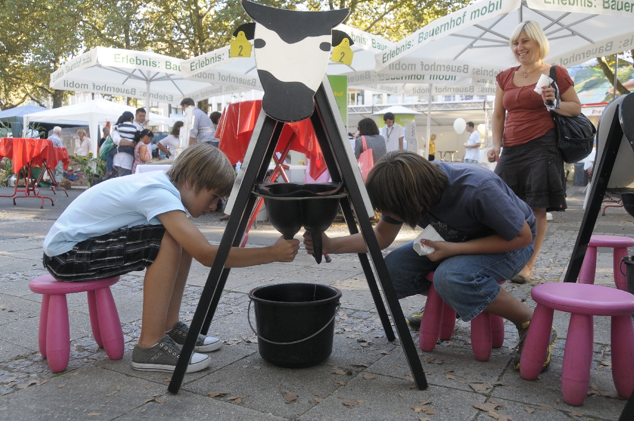 Nur noch wenige Städter haben einen direkten Kontakt zur Landwirtschaft. Die Initiatoren des mobilen Erlebnisbauernhofs haben den Spieß deshalb umgedreht. Der Bauernhof kommt nun zu den Städtern. Im August 2012 war die Domstadt Köln das Ziel des "Landtrosses" um dem Städter ein umfassendes Bild der modernen, nachhaltigen Landwirtschaft zu vermitteln.Eine Sau mit ihren Ferkeln und die schwarz-weiß gefleckten Kälbchen zogen die großen und kleinen Kölnerinnen und Kölner magisch an. Die Tiere waren zutraulich und ließen sich gerne von den unzähligen Kinderhänden streicheln. Doch es gab noch weitaus mehr zu sehen. Rund 35 Schulklassen mit insgesamt 600 Kindern waren der Einladung gefolgt und absolvierten begeistert das Kinderprogramm. Dabei gab es viel zu sehen und zu lernen. Welche grüne Pflanze bringt Tomaten hervor und welche Karotten, wie riecht Kümmel, oder wie wird aus Blütennektar Honig? Diese und viele andere Fragen wurden an den verschiedenen Stationen des Bauernhofes spielerisch und unterhaltsam beantwortet.