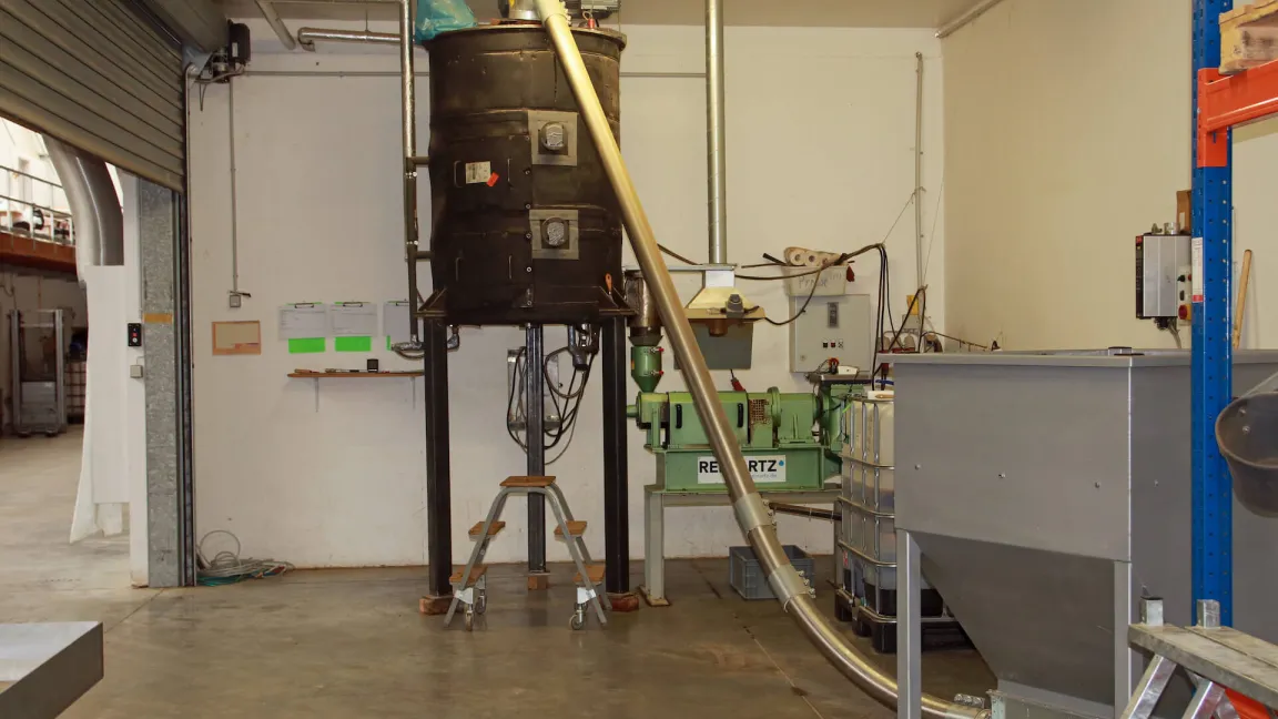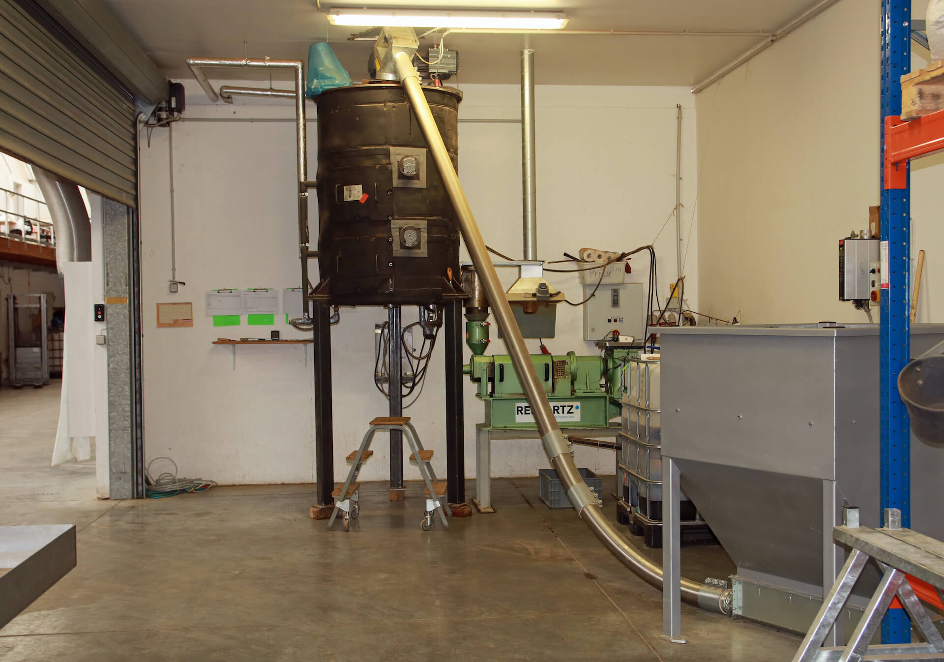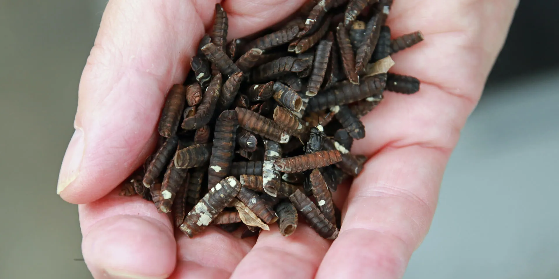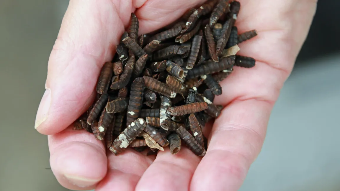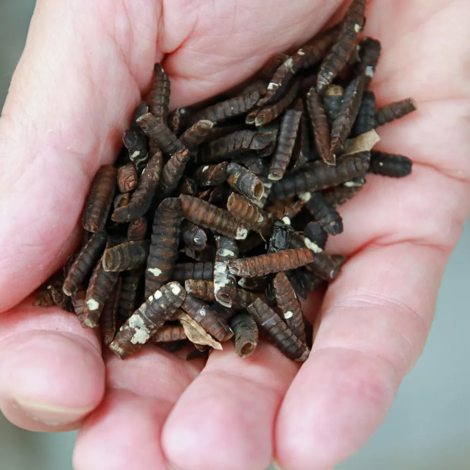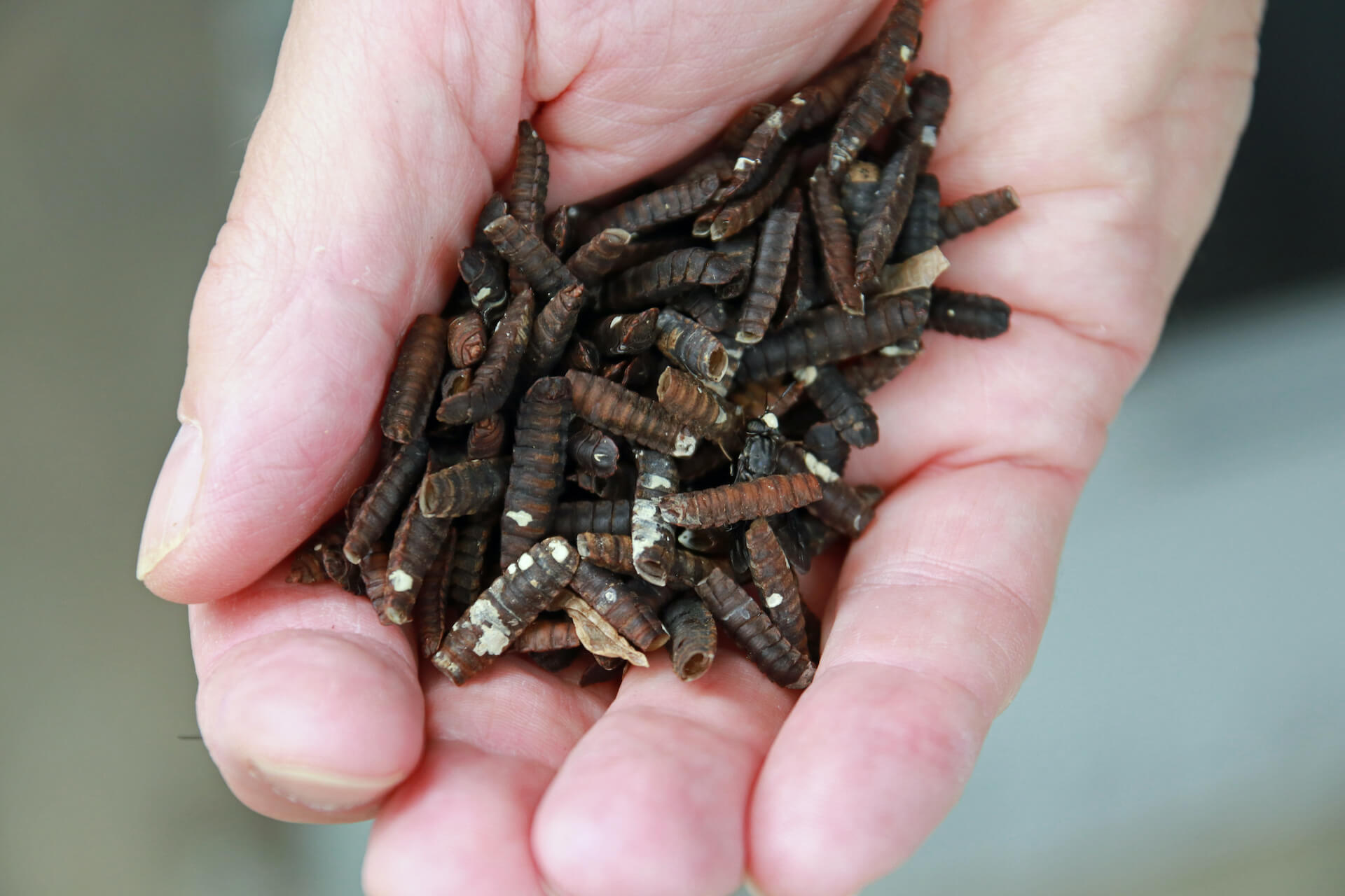 Ist die Mastphase beendet und die Larve kurz vor der Verpuppung, ist es Zeit für die Weiterverarbeitung. Die Larven werden ausgesiebt, mithilfe von Hitze getötet und getrocknet. In nicht einmal einem Monat entstehen auf etwa 300 Quadratmeter Zelt- und Reaktorfläche aus 5 Kilogramm Eigelegen stolze 30 Tonnen Larven-Frischmasse.