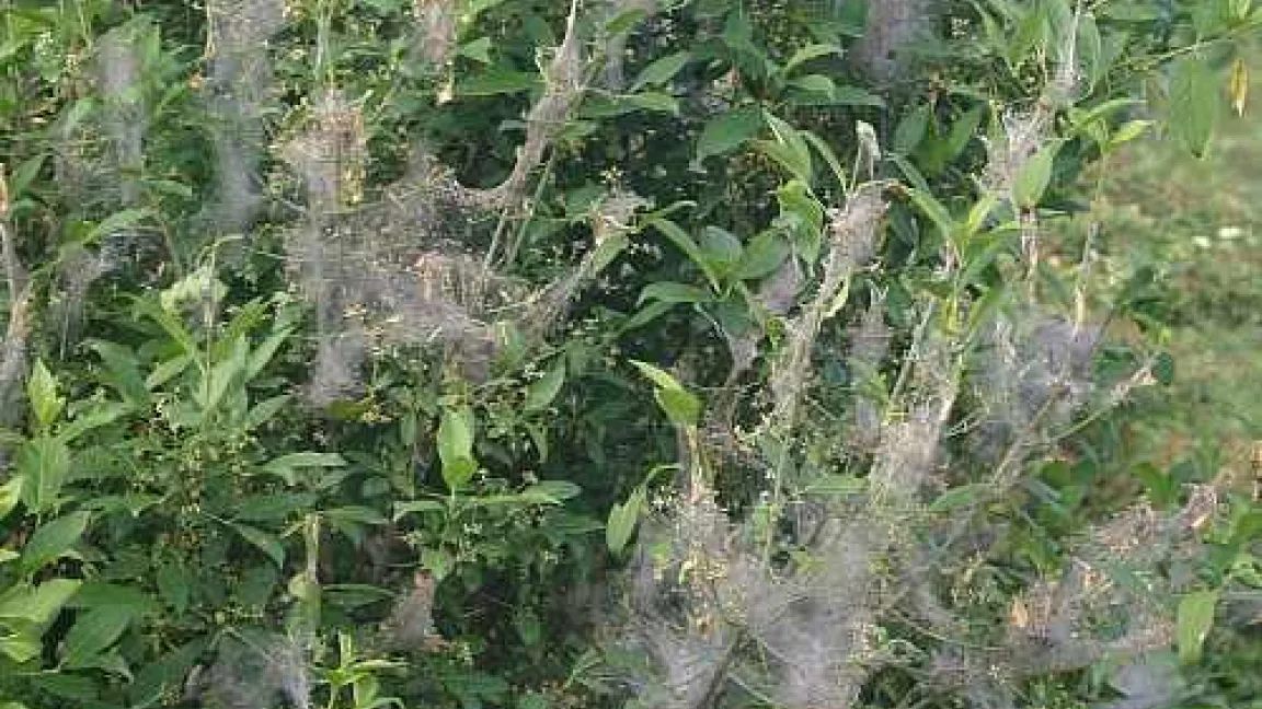 Gespenstische „Kunstwerke“: Gespinstmotten verwandeln Bäume und Sträucher