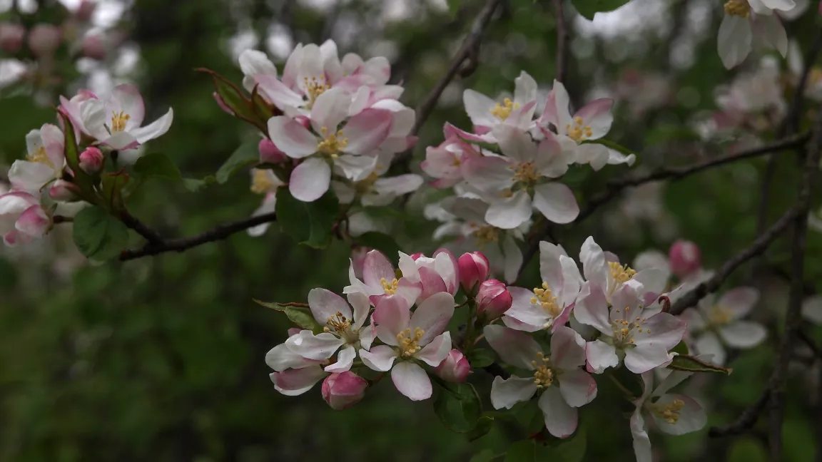 Blüte: April und Mai, zuerst rosa leuchtende, später weiße Blüten (zwittrig)