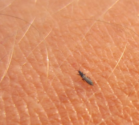 Gewittertierchen ist die volkstümliche Bezeichnung für den Getreidethrips (Limothrips cerealium und Limothrips denticornis). Er ist eine von weltweit über 5 000 Thripsarten. In Deutschland gibt es über 200 verschiedene, die unterschiedliche Kulturarten befallen. Getreidethripse schwärmen besonders bei feuchtwarmem Wetter massenhaft in der Umgebung von Weizen- und Gerstenfeldern, wo sie zuhause sind. Unangenehm wird es für uns, wenn elektrisch aufgeladene Gewitterwolken ihren Flug stören. Die Thripse versuchen, auf dem Boden zu landen. Manchmal geht das dann buchstäblich „ins Auge“. Viele Insekten in Bodennähe können also Vorboten für Gewitter sein. Aufgrund der Haftblasen an den Füßen werden Thripse auch Blasenfüße genannt. Die ausgefransten Flügelränder brachten ihnen außerdem den Namen Fransenflügler ein. Damit sind sie – wenn überhaupt – eher gemütliche Flieger. Sie bewegen sich mit nur zehn Zentimeter pro Sekunde durch die Luft. Thermik und Wind sorgen dafür, dass die ein bis zwei Millimeter großen, überwiegend schwarzen Tiere bis in Wohngebiete verfrachtet werden, die an Getreidefelder angrenzen. Sie werden von hellen Farben angelockt und landen auch auf Menschen. Für diese sind Thripse nicht schädlich. Nur wenn sie mit Ihren Mundwerkzeugen in die Haut eindringen, kann es zu unangenehmem Juckreiz kommen.