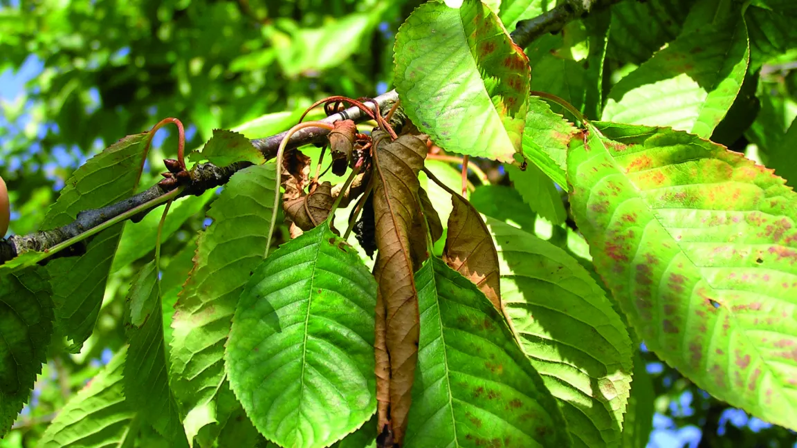 Bei feuchtem und niederschlagsreichem Frühjahrs- und Frühsommerwetter schrillen in den Süßkirschenanbaugebieten die Alarmglocken. Obstgartenbesitzer werden unruhig. Denn dann schlägt mit Gnomonia ein besonders tückischer Blatt- und Fruchtpilz zu, der nur mit konsequentem Pflanzenschutz abzuwehren ist. Dabei spielt das richtige Timing eine entscheidende Rolle.Wenn das typische Schadbild mit eingetrockneten, verbräunten Blättern sichtbar wird, ist der Krankheitszyklus bereits im Gange und das schon seit April des Vorjahres. Zu Beginn zeigen sich undeutliche bleiche Flecke auf den Blättern. Ab Ende Mai verfärben sich die Flecke gelb, in ihrem Zentrum werden rötliche, später braune Stellen sichtbar. Bis zum September fließen diese Flecke zusammen. Bei frühzeitiger Infektion zeigen die Früchte braune Flecke, sie schrumpfen, verkrüppeln und haben Risse. Für die Vermarktung kommen solche Kirschen nicht in Frage. Häufig werden diese Früchte vorzeitig abgeworfen.