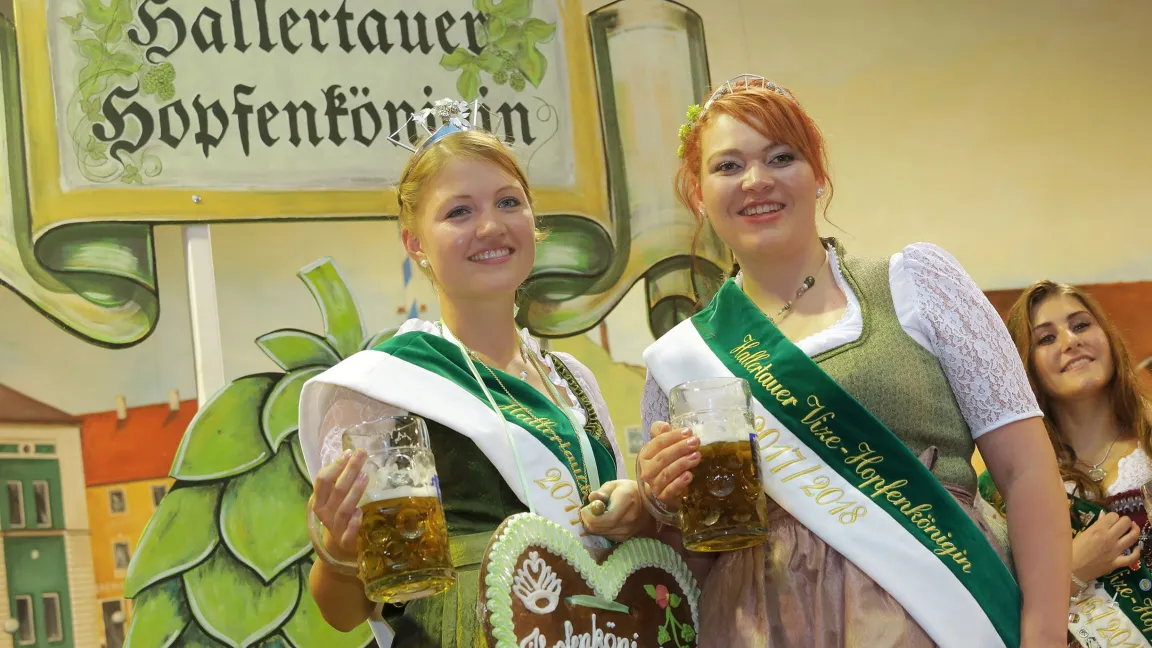 Die vom Hopfenpflanzerverband Hallertau organisierte Wahl fand im Rahmen des Wolnzacher Volksfests im August 2017 statt. Wir Bewerberinnen mussten eine Rede halten und uns den Fragen des Moderators stellen. Die Besucher der Veranstaltung haben sich dann für mich entschieden. Damit wurde ich zur Hallertauer Hopfenkönigin 2017/2018 gewählt. Mir zur Seite stand Vize-Königin Katharina Schinagl. Auch die anderen Anbaugebiete Elbe-Saale, Tettnang, Spalt und Bitburg haben ihre Königinnen. Sie sind flächenmäßig jedoch sehr viel kleiner. Deswegen vertrat ich sie auch bei Terminen des Verbands Deutscher Hopfenpflanzer e. V. im Ausland.