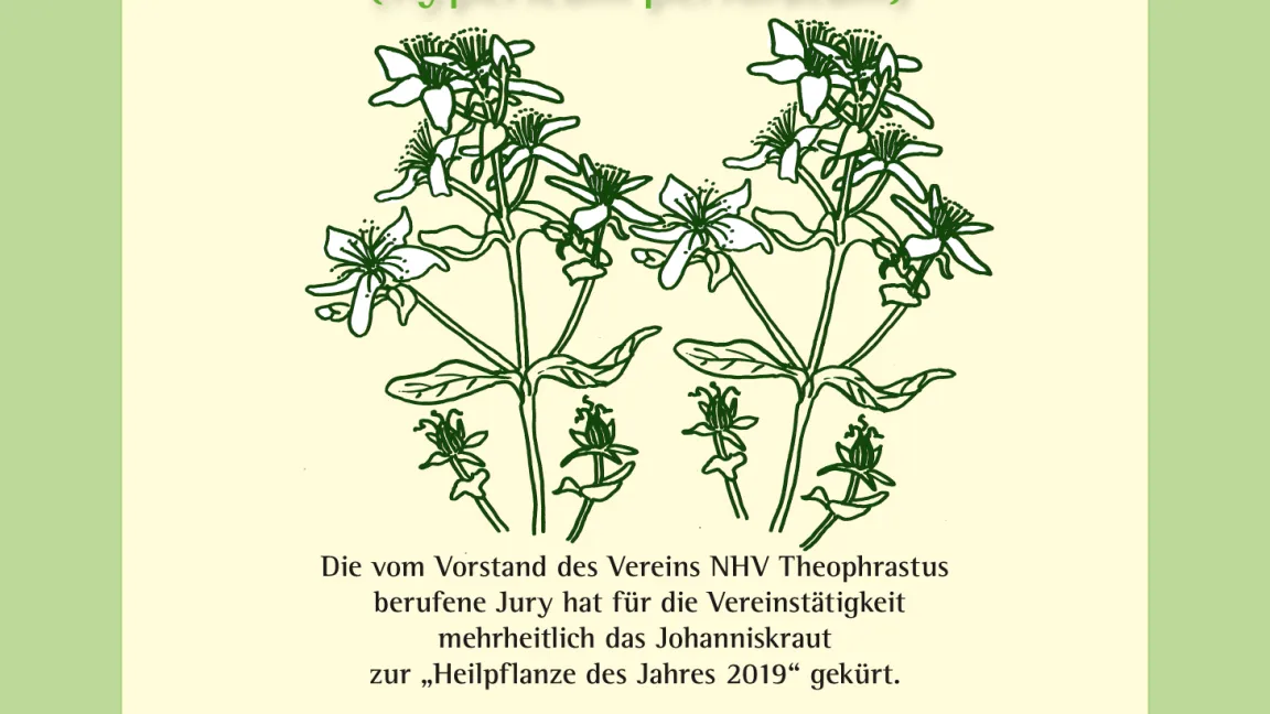 Mit der Kür des Johanniskrauts zur „Heilpflanze des Jahres 2019“ möchte der Naturheilverein NHV Theophrastus das Vertrauen der Menschen in diese altbewährte Heilpflanze stärken. Der Verein, mit vollem Namen „Verein zur Förderung der naturgemäßen Heilweise nach Theophrastus Bombastus von Hohenheim, genannt Paracelsus e. V.“ kürt die „Heilpflanze des Jahres“ seit 2003 und möchte so naturheilkundliches Wissen pflegen und bewahren.Obwohl das Echte Johanniskraut erst 2015 zur „Arzneipflanze des Jahres“ gekürt worden war, fiel die Wahl der Jury zur „Heilpflanze des Jahres“ im Auftrag des NHV Theophrastus auch auf das vielseitige Heilkraut. Heilpraktikerin Christina Schäfer, Jury-Vorsitzende, begründet die Entscheidung so: „Eine Heilpflanze, die so eine Odyssee durchlebt und durchlitten hat, verdient es, wiederholt gewürdigt und unter verschiedenen Aspekten der Naturheilkunde betrachtet zu werden, auch wenn sie bereits Arzneipflanze des Jahres war.“