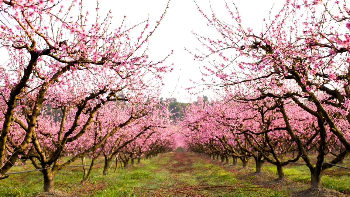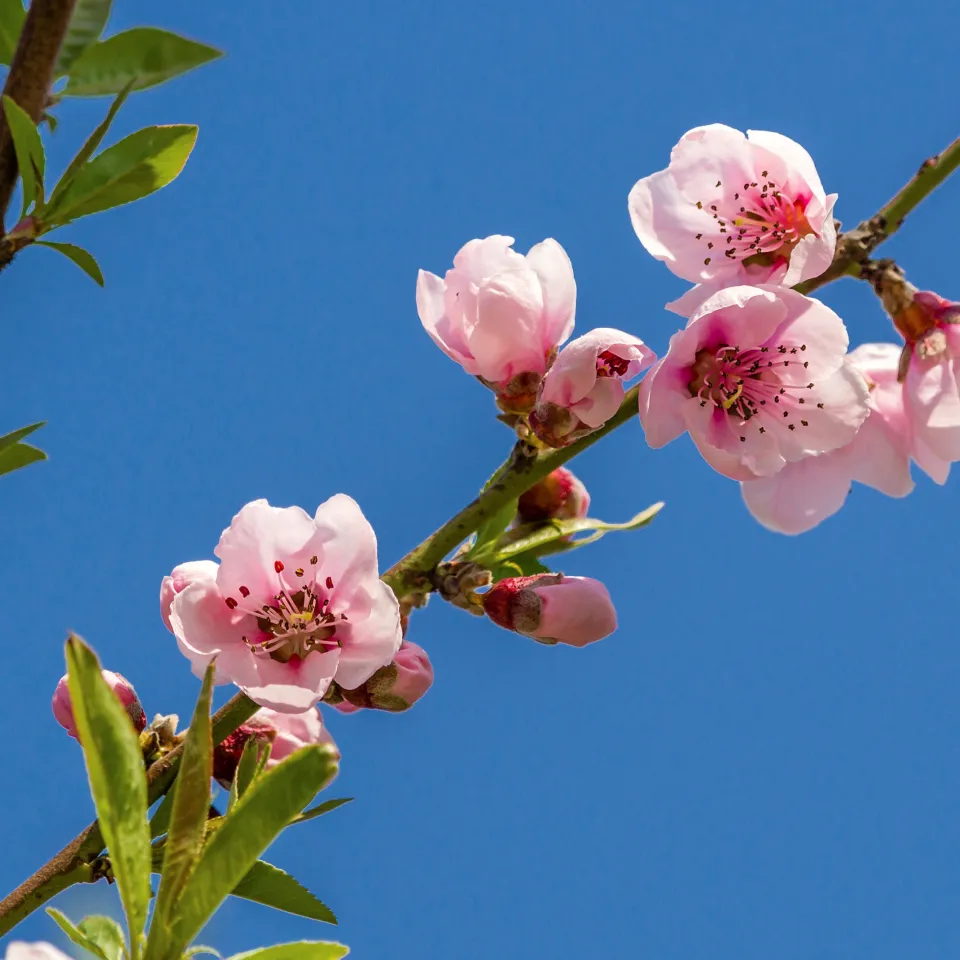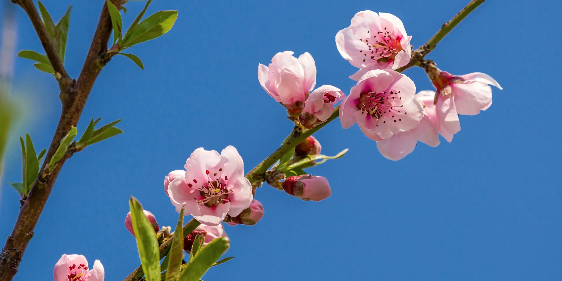 Pfirsiche (Prunus Persica) gehören zur Gattung Prunus und zur Familie der Rosengewächse. Die Früchte zählen als Steinobst, zu dem auch Kirsche, Nektarine oder Aprikose gehören. Wenn der Pfirsich blüht, ergibt sich ein rötliches bis gelbes Farbenmeer. In Mitteleuropa ist die Blütezeit nicht wie in Japan im März, sondern Mitte April. Die glockigen Pfirsichblüten sind sehr kurz gestielt, ihr Durchmesser umfasst etwa 3 Zentimeter. Pfirsichblüten sind zwittrig, das heißt, sie haben männliche und weibliche Erbanlagen. Die fünf Kelchblätter sind an ihrer Außenseite behaart. Die rosafarbenen Kronblätter sind oval und ganzrandig. In der traditionellen Volksheilkunde werden nicht nur die Früchte, sondern auch die Blätter, Blüten und Rinde des Pfirsichbaums verwendet.