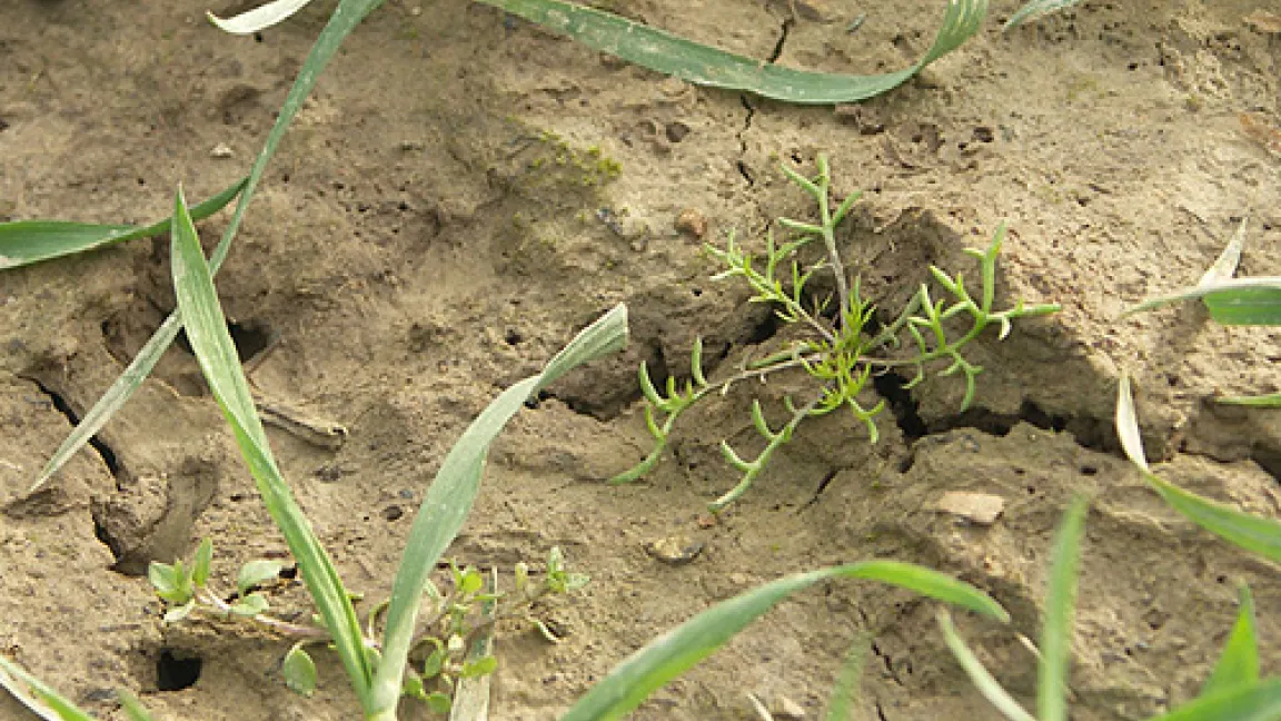 Der Weizen-Winterschlaf auf Rosewigs Garten ist vorbei. Statt kleiner Pflänzchen mit drei Blättern sind auf dem Acker im Rheinland nun kräftige Pflanzen mit mehreren Bestockungstrieben zu finden, aus denen sich später Halme und Ähren entwickeln. Die milden Tage der letzten Wochen haben aber auch Unkräuter und Gräser wachsen lassen. Sie konkurrieren jetzt mit dem Weizen um Licht, Wasser und Nährstoffe.Der Landwirt ist deswegen schon einmal quer über den Acker gegangen und hat geprüft, aus welchen Arten sich die Begleitflora jetzt zu Beginn des Frühjahrs zusammensetzt. Von vielen Pflanzen sind zwar gerade erst die winzigen Keimblätter zu sehen, aber der Profi erkennt sie auf den ersten Blick. Auf Rosewigs Garten sind das beispielsweise Kräuter wie Vogelmiere, Ehrenpreis, Ackerstiefmütterchen und Klettenlabkraut, aber auch Gräser wie Ackerfuchsschwanz und Windhalm.