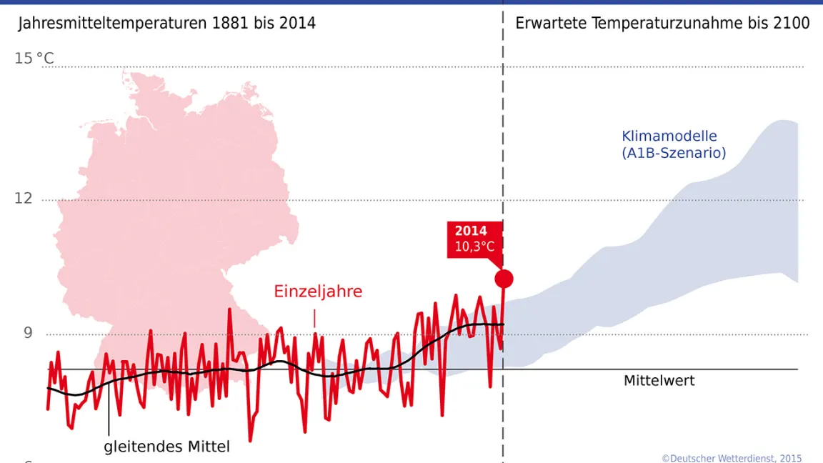 Grundsätzlich bestätigen sich die Trends der letzten Jahrzehnte. In jüngster Zeit kam es aber auch immer wieder zu Überraschungen. So hat die Temperatur nicht ganz so schnell wie erwartet zugenommen. Weil die Tendenz aber weiter aufwärts geht, reihen sich die besonders warmen Jahre im letzten Jahrzehnt dicht aneinander. 2015 war sogar weltweit das wärmste Jahr in der Klimageschichte, was zum Teil auch dem Wetterphänomen El Niño geschuldet ist. Im letzten Jahrhundert stieg die Durchschnittstemperatur in Deutschland um ein Grad. In den nächsten 50 Jahren werden es nach unseren Erwartungen weitere ein bis zwei Grad sein. Im Sommerhalbjahr können wir uns tendenziell auf niedrigere Niederschläge einstellen, im Winterhalbjahr auf höhere. Dazu passen einige trockene Sommer zu Beginn der 2000er Jahre, so zum Beispiel im Jahr 2003. Trotzdem hatten wir im August 2002 ein Jahrhunderthochwasser in Ostdeutschland und im Juni 2013 gleich das nächste in Ost- und Süddeutschland. Bei den Niederschlägen gibt es regional größere Schwankungen als bei der Temperatur. Trockenphasen werden ebenso wie Starkregenereignisse häufiger auftreten. Die mittleren Windgeschwindigkeiten sollen zurückgehen, die Sturmereignisse aber zunehmen. Der Klimawandel entwickelt sich also nicht linear, sondern steckt voller Überraschungen.