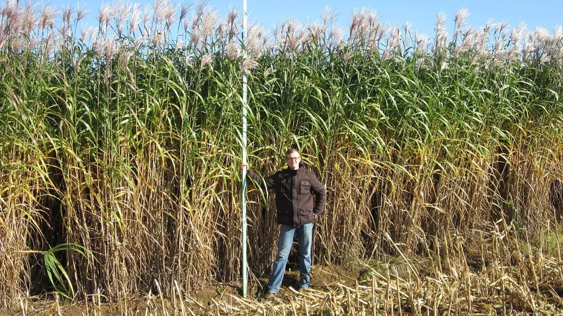 Viele kennen Miscanthus sinensis als „Chinaschilf“ oder auch unter dem Namen Elefantengras im Garten. Dort wächst das aus Nordchina, dem Himalaya sowie Japan stammende Ziergras schnell in beeindruckende Höhen von bis zu 3 Metern. Es geht aber noch größer: Ein weiterer Vertreter der Gattung Miscanthus ist Miscanthus giganteus. Das Riesen-Chinaschilf wird unter anderem als Biomasse-Lieferant in der Energieerzeugung, zur Ethanolproduktion und als Bau- und Faserstoff eingesetzt.