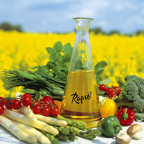 Rapsöl ist in der menschlichen Ernährung viel mehr als nur ein Energielieferant. Die hohen Anteile von Ölsäure (60 Prozent) und Linolsäure (20 Prozent) wirken sich positiv auf den Stoffwechsel und die Blutfettwerte (den Cholesterinspiegel) aus. Auch das Verhältnis von Ölsäure zu Linolsäure halten Ernährungsexperten für besonders günstig. Darüber hinaus enthält Rapsöl neun Prozent der lebenswichtigen Omega-3-Fettsäuren, die der Körper nicht selbst bilden kann. Nicht zuletzt sind Fettsäuren für den Transport der fettlöslichen Vitamine A, D, und E unentbehrlich. Den Durchbruch des Rapses als hochwertiges Lebens- und Futtermittel brachte die Züchtung von Sorten, die kaum noch Bitterstoffe (Glucosinolate) enthalten.