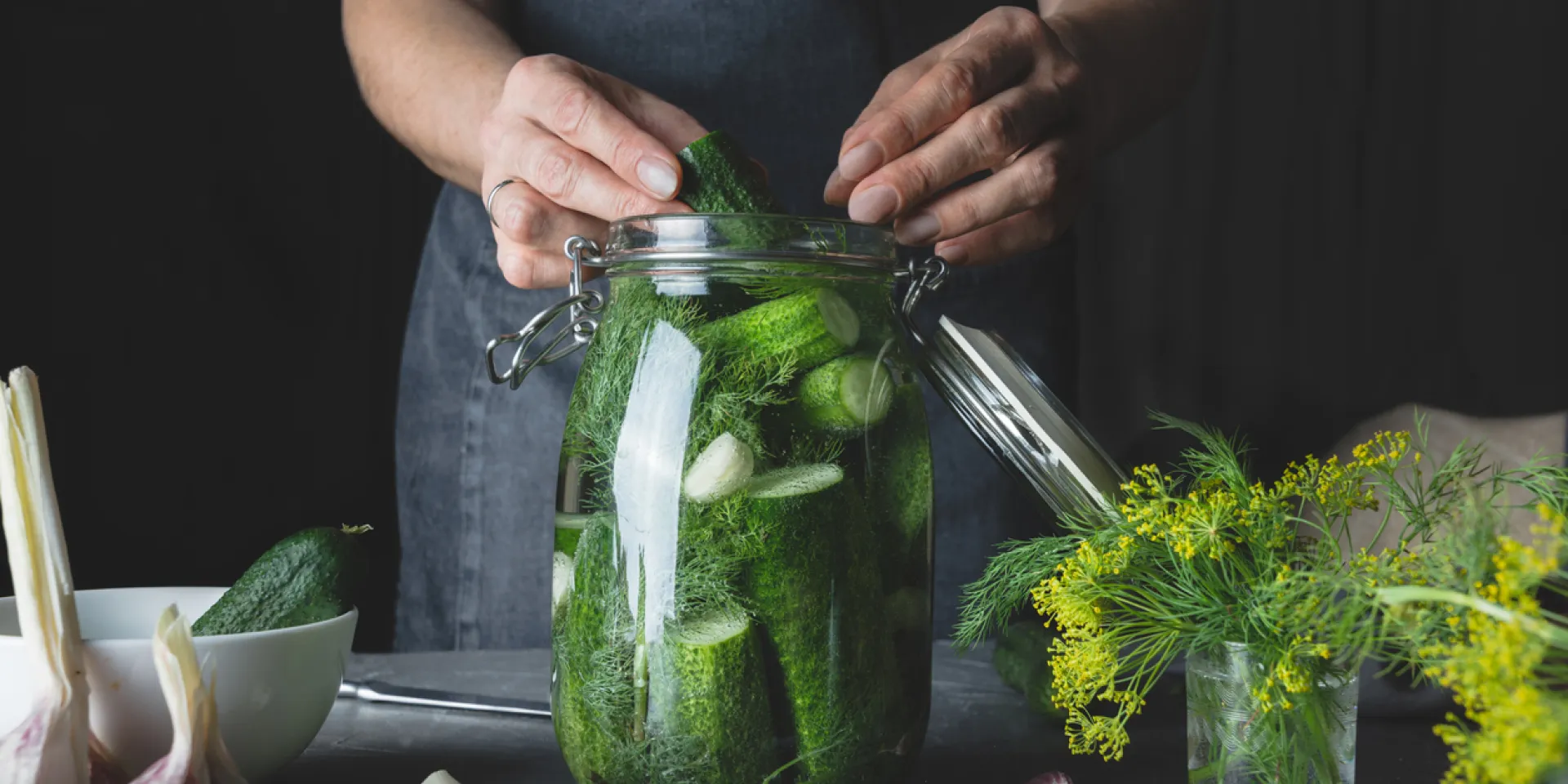 Auch Fermentieren ist eine alte Methode zum Haltbarmachen von Gemüse. Hier kommen die guten Milchsäurebakterien zum Zuge, die sich natürlicherweise auf den Lebensmitteln befinden und Kohlenhydrate zu Milchsäure vergären. Daher auch die Bezeichnung milchsaures Vergären. Das bekannteste Beispiel ist Sauerkraut, das die Seefahrer im 18. Jahrhundert in großen Fässern dabeihatten, um sich vor der Vitamin C-Mangelerkrankung Skorbut zu schützen. Auch Kimchi, der scharf gewürzte und fermentierte Kohl aus Korea, ist mittlerweile in Deutschland sehr bekannt und beliebt. Darüber hinaus können im Prinzip auch alle anderen Gemüsearten fermentiert werden. Dazu werden sie möglichst fein zerkleinert und gesalzen, sodass ihre Flüssigkeit austritt, in der sie dann unter Luftausschluss gären. Alternativ werden die Gemüsestückchen mit Salzlake bedeckt. Bei diesem Prozess entstehen nicht nur neue Geschmacksnuancen, sondern das milchsauer Vergorene fördert auch eine gesunde Darmflora.
