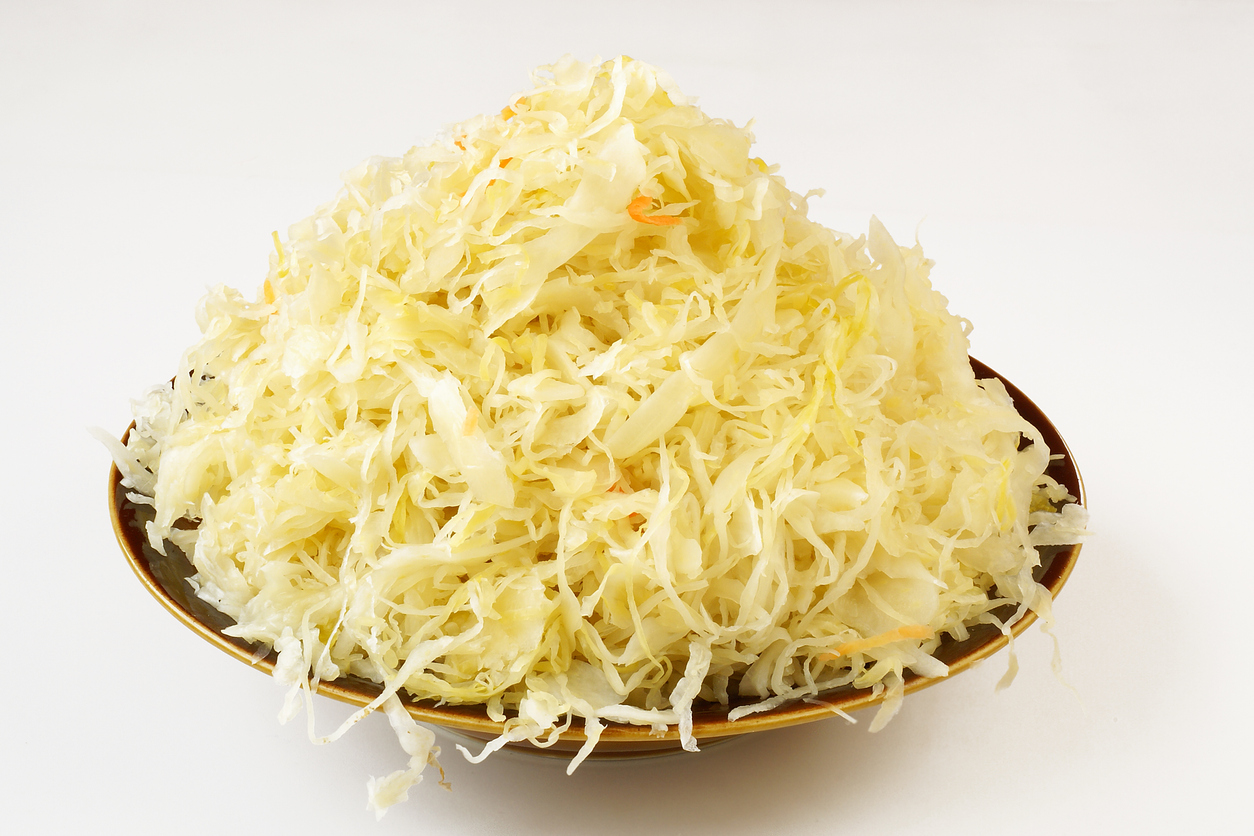 Sauerkraut ist die klassische Beilage zu Haxen, Kassler, Eisbein und Bratwurst. „Lecker“ denken die einen, „geht aus Figurgründen gar nicht“ die anderen. Wenn wir das Sauerkraut isoliert betrachten, sind Sorgen unbegründet: 100 Gramm enthalten nämlich 0 Gramm Fett und lediglich 25 Kalorien. Das macht es für bewusste Genießer sehr interessant, die dann gerne zur Sauerkrautsuppe und zum Putengulasch oder Filettopf mit Sauerkraut greifen.