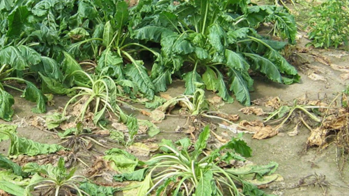 „Bei Zuckerrüben kann Rhizoctonia solani zum Verlust der gesamten Ernte führen“, weiß Heinrichs. Befallene Rüben bilden bereits vor dem Verfaulen Invertzucker anstelle von Saccharose. Das gefährdet die Zuckergewinnung in den Fabriken: „Invertzucker verklebt die Siebe und kristallisiert nicht wie die Saccharose. Deshalb werden Lieferpartien mit faulen Rüben erst gar nicht zur Verarbeitung angenommen“, erklärt der Experte. Für den Landwirt bedeutet das einen erheblichen finanziellen Verlust, denn diese Rüben können allenfalls noch zu Tierfutter verarbeitet werden.