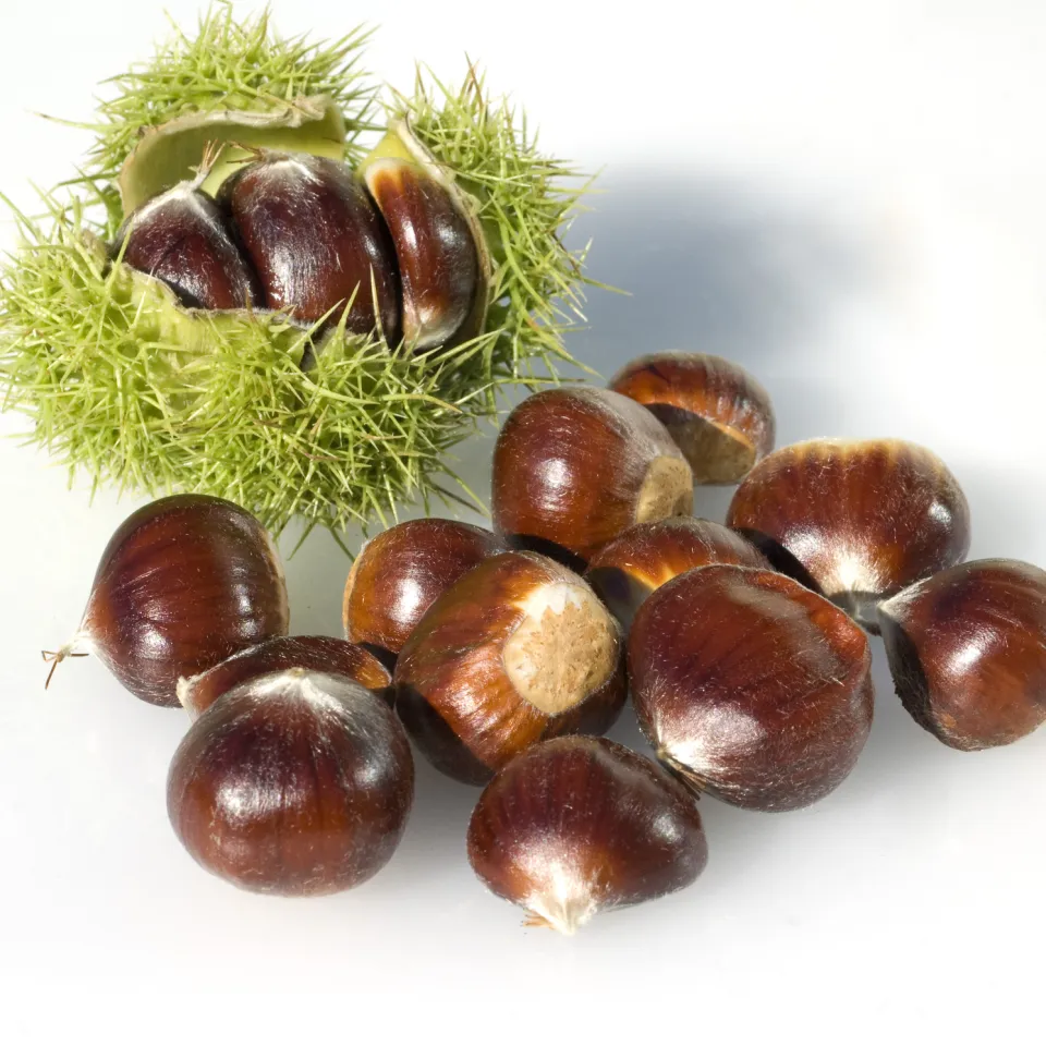 Übrigens: Die Esskastanie Castanea ist nicht mit der Rosskastanie Aesculus verwandt. Erstere gehört zur Familie der Buchengewächse, letztere zur Familie der Rosskastaniengewächse.