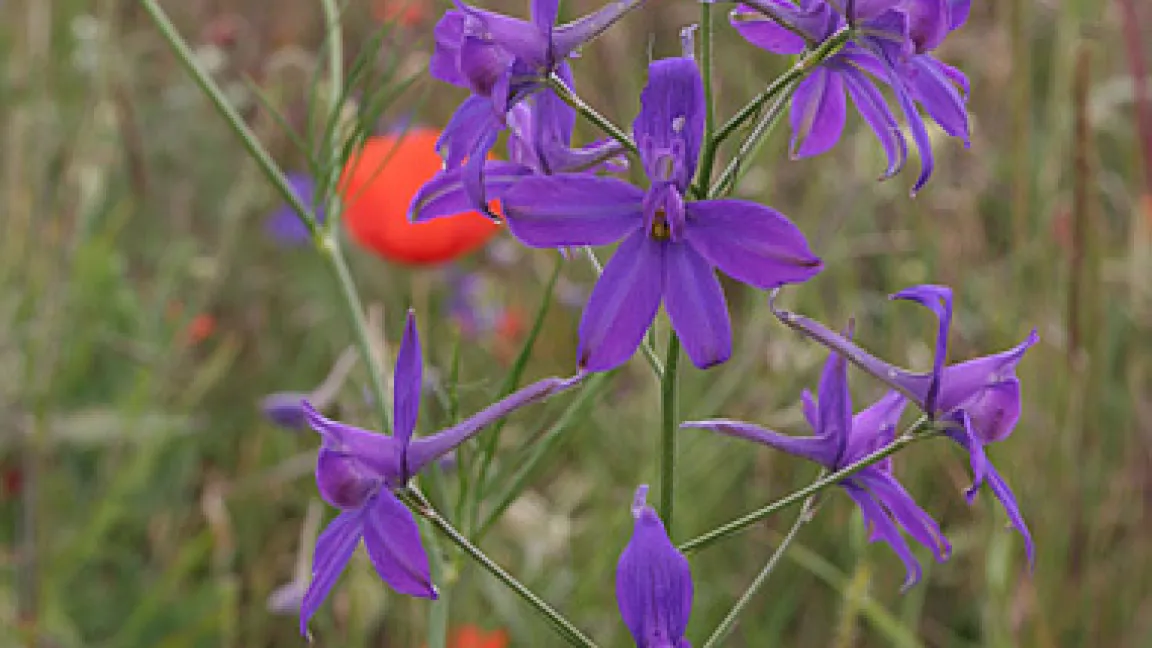 Im Gebiet westlich des rheinland-pfälzischen Worms findet man ihn noch, den dunkel oder azurblauen Acker-Rittersporn, auch andere Pflanzen wie das Sommer-Adonisröschen, den Blauen Gauchheil, das Rundblättrige Hasenohr oder die Möhren-Haftdolde. Charakterpflanzen aus der seltenen Adonisröschen-Gesellschaft werden in der Roten Liste als stark bis sehr stark gefährdet geführt. Ehrenamtlich kümmern sich Menschen darum, dass diese vom Aussterben bedrohte Gesellschaft erhalten bleibt.In dem etwa 10 Hektar großen Gebiet nördlich von Grünstadt handelt es sich um wenig rentable Böden, auf flachgründigem Kalkboden, zum Teil in Hanglagen. Mit finanziellen Anreizen stützt man die notwendige extensive Bewirtschaftung dieser Flächen.