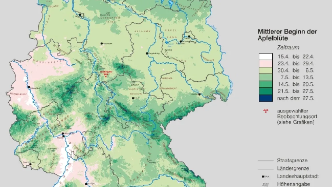 Für uns zählt der phänologische Kalender. Die wiederkehrenden Ereignisse in der Natur geben die Jahreszeiten vor. Wenn Forsythien blühen oder Weiden und Wiesen ergrünen, beginnt nach phänologischer Definition der Erstfrühling. Die Apfelblüte zeigt den Vollfrühling an. Im milden Südwesten Deutschlands ist das im langjährigen Mittel bereits Mitte April, in den Mittelgebirgslagen und den Küsten erst Mitte Mai der Fall. Eine Situation wie 2013, in der besonders in der Nordosthälfte der Winter bis in den April anhält, ist schon ungewöhnlich.