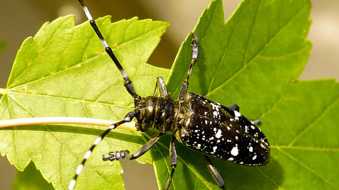Der Asiatische Laubholzbockkäfer (Anoplophora glabripennis) wird über Verpackungsholz verschleppt. Er befällt auch gesunde Laubbäume. Foto: Thomas Schröder/JKI