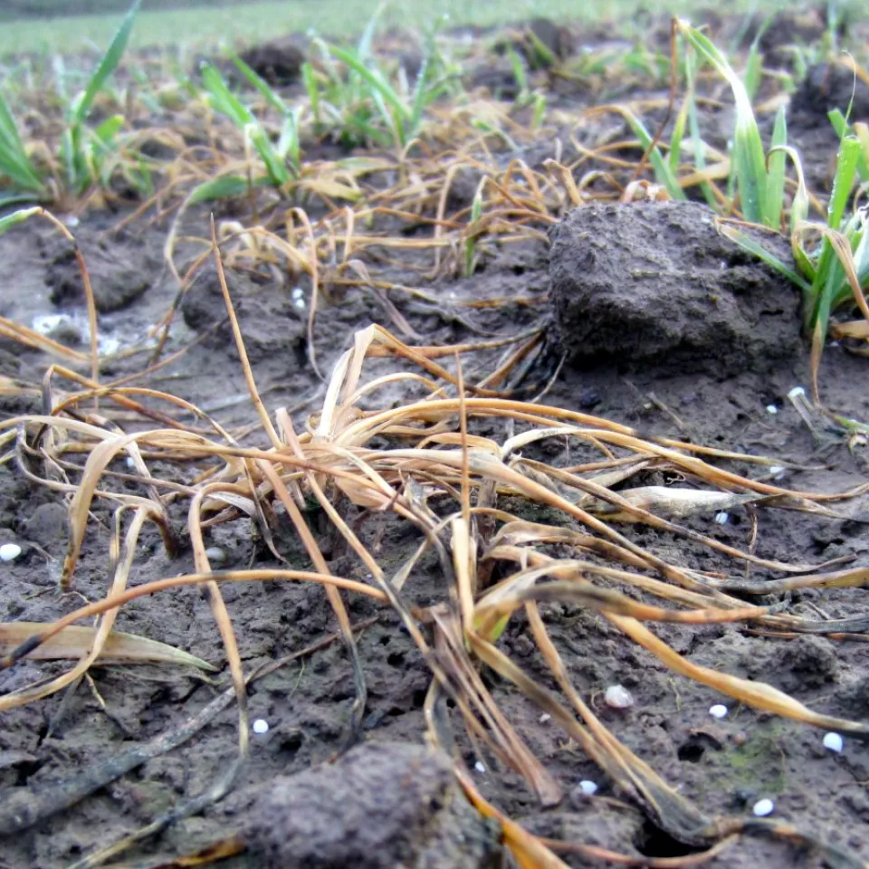 Während in den meisten deutschen Anbaugebieten die Bestände wieder ein zartes Grün zeigen, bleiben die erfrorenen Flächen gelblich oder grau. Die Pflanzen sehen wie vertrocknet aus und sind komplett abgestorben. Hat dagegen der Vegetationskegel den Winter überstanden, treibt die Pflanze nach ein paar milden Tagen wieder aus, selbst wenn alle Blätter erfroren sind.