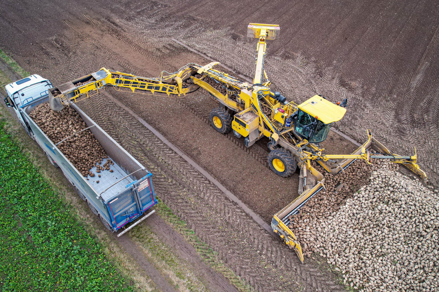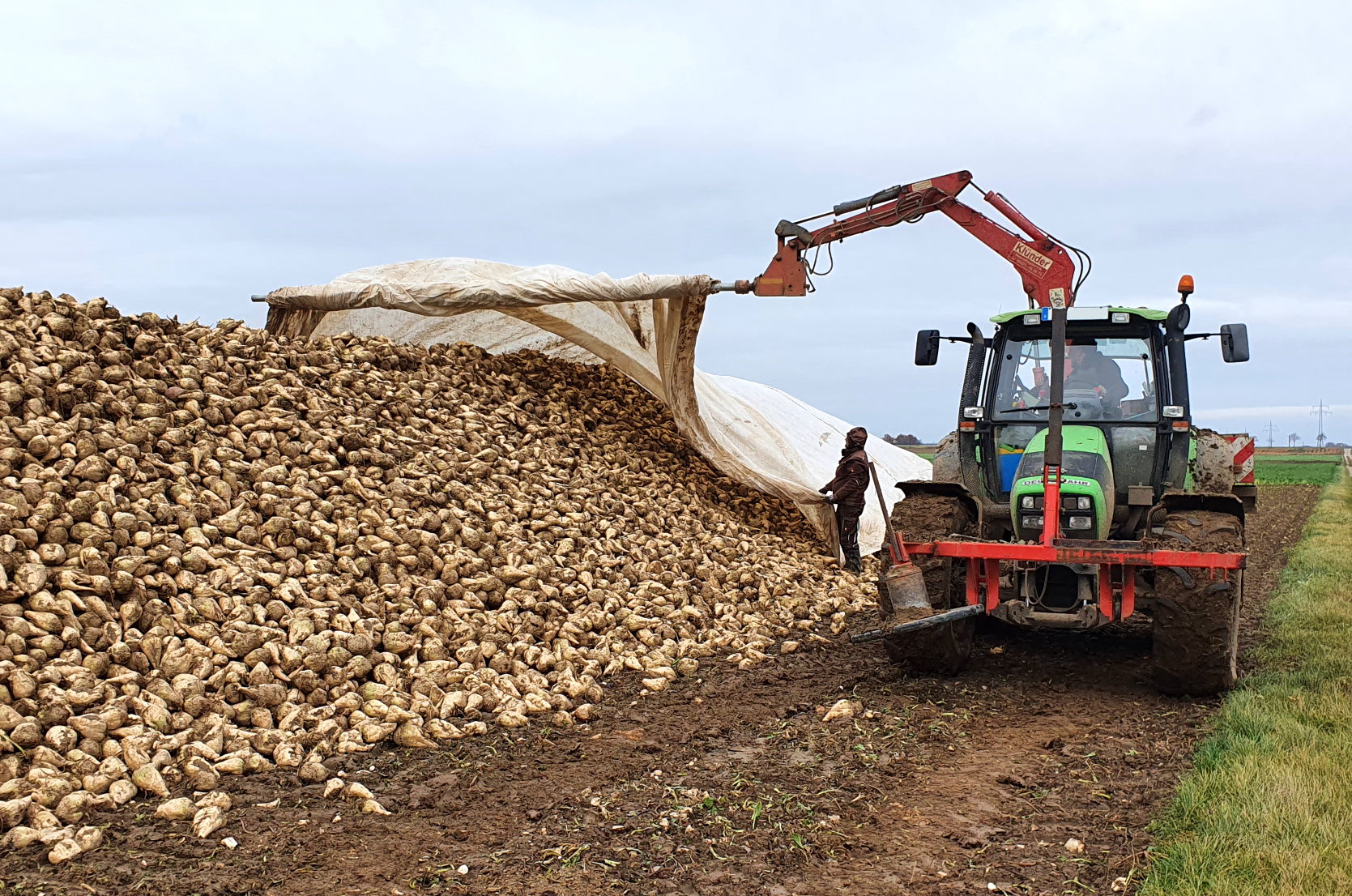 Die letzten Rüben werden überwiegend im November gerodet, weil viele Landwirte nach den Zuckerrüben noch Winterweizen als Folgekultur auf den Flächen einsäen. Spätere Saattermine sind im Mittel der Jahre mit Ertragseinbußen verbunden. Wer auf der Fläche erst im nächsten Frühjahr Sommerweizen oder Mais einsäen möchte, könnte theoretisch mit der Ernte bis kurz vor der Abfuhr warten. Doch je weiter es in den Winter hineingeht, desto größer ist das Wetterrisiko. Schnell ist so viel Niederschlag gefallen, dass die Felder mit den schweren Rodern über mehrere Wochen nicht mehr befahren werden können. Sie würden tiefe Spuren und damit schädliche Bodenverdichtungen hinterlassen.