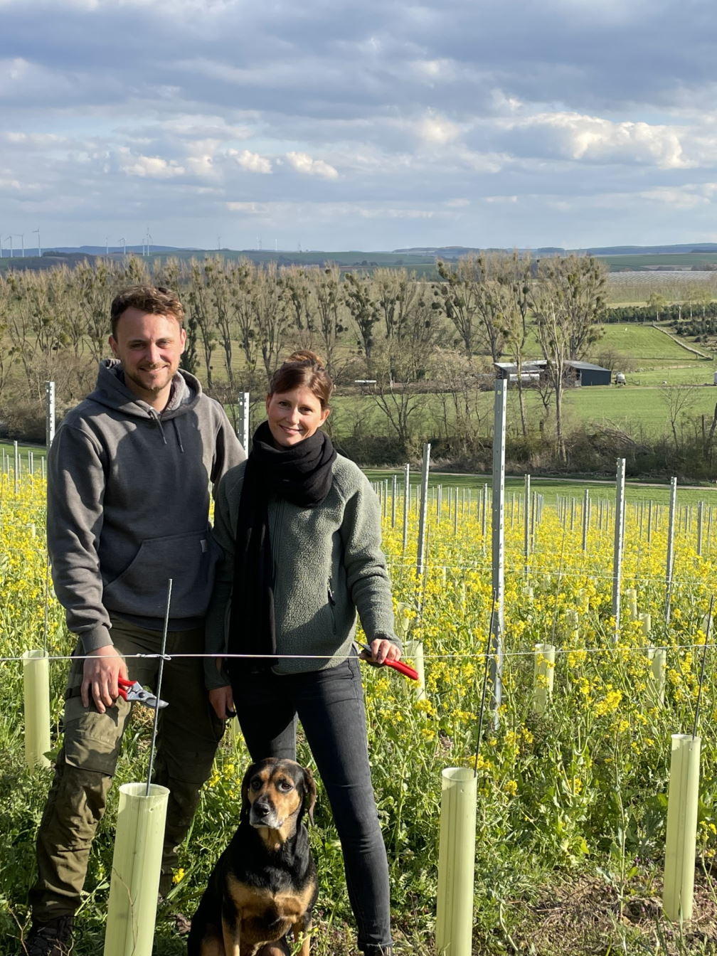 Lisa und Markus Schäfer aus Vlatten (Nordrhein-Westfalen) haben 2020 den Einstieg in den Weinbau gewagt. Auf 3,8 Hektar ihres Ackerbaubetriebs am Nordrand der Eifel wachsen Sauvignac oder Cabernet Jura. „Wir haben nach einem weiteren Standbein für unseren landwirtschaftlichen Betrieb gesucht. Generell macht uns der Klimawandel zwar Sorgen, aber er bietet die Chance für den neuen Betriebszweig“, so der junge Landwirt. Wichtig sei vor allem, dass sich Zahl und Intensität der Spätfröste vermindert hätten: „Denn bei stärkeren Frösten ab April können die Knospen abfrieren. Das wäre ein K.o.-Kriterium für den Anbau. Die Blüte ist normalerweise nicht gefährdet, weil sie erst spät ab Mitte Mai beginnt“.