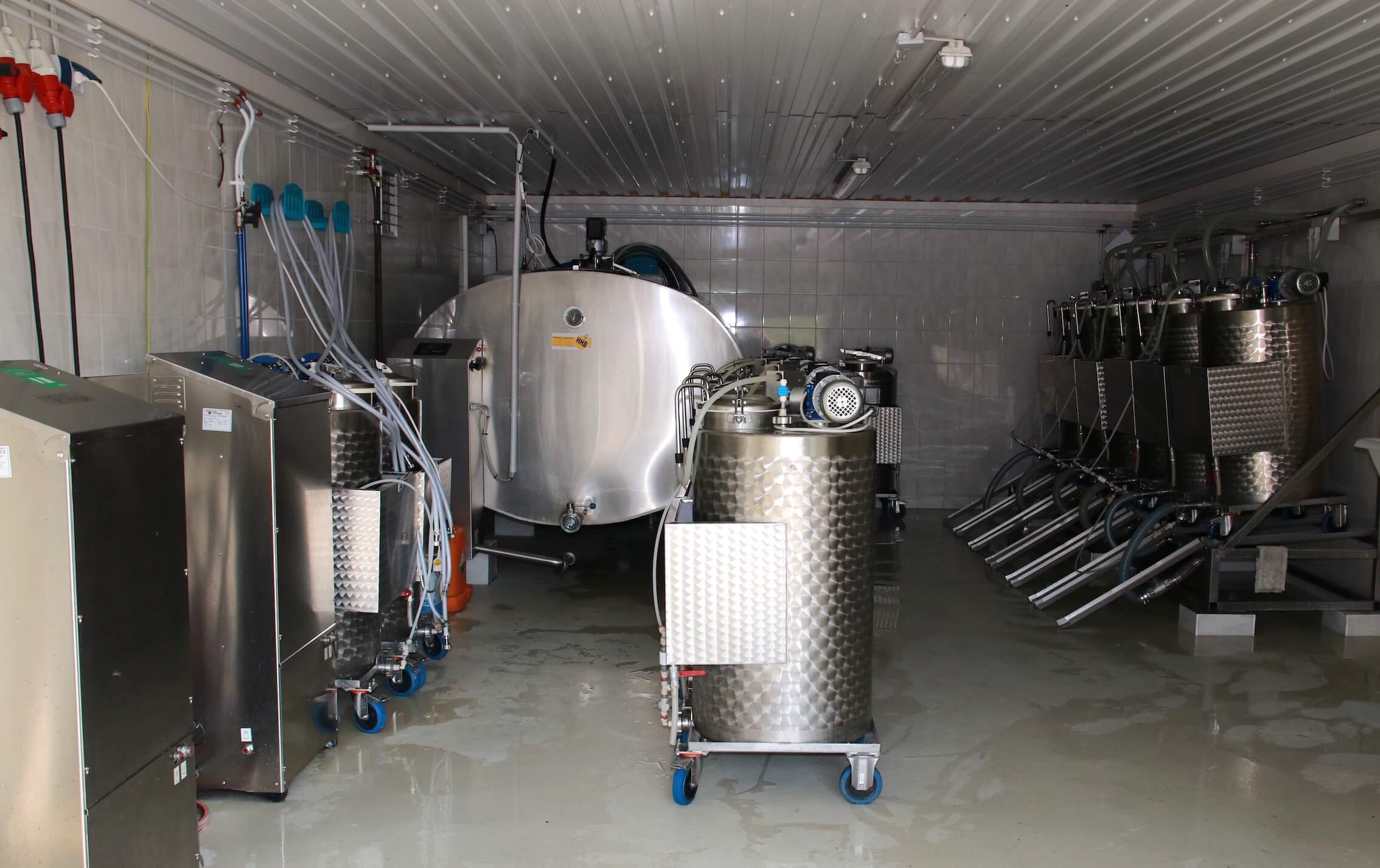 Mit der Anschaffung der Milchautomaten für die Supermärkte ist der Vermarktungsweg allerdings noch lange nicht erledigt; auch auf dem Hof waren Umbauten nötig. Die für die Tankstellen vorgesehene Milch wird dort in zwei Pasteurisierern für 20 Sekunden auf 72 Grad Celsius erhitzt. Die Milch wird immer mit dem Original-Fettgehalt ausgeliefert – laut Angabe auf dem Automaten sind das mindestens 3,8 Prozent. In Edelstahltanks abgefüllt, wird sie gekühlt und ausgefahren. Wichtig ist, die Kühlkette ununterbrochen einzuhalten, auch in Sommern wie 2018, betont Maren Güldenpfennig. Der Automat im Supermarkt füllt die Milch dann in Glas- oder PET-Flaschen, die der Kunde mitbringen oder im nebenstehenden Flaschenregal kaufen und wiederverwenden kann.