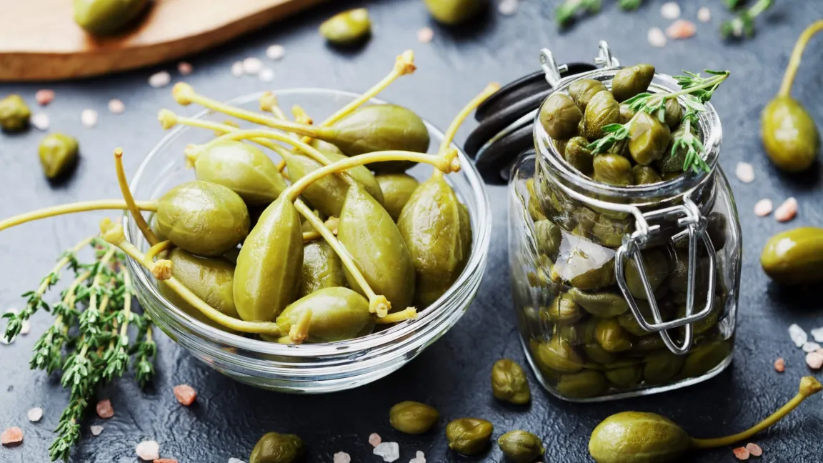 Kapernsträucher sind übrigens mit unseren Kohlarten eng verwandt. Ihren markant herben Geschmack verdanken die Kapern Senfölen und der ziegenbockartig riechenden Caprinsäure. Die Kapern sind nicht die Früchte des Kapernstrauchs, sondern die noch geschlossenen und konservierten Blütenknospen. Die Ernte ist auch heute noch Handarbeit: Sorgfältig werden die Knospen im Frühjahr an trockenen Tagen am besten morgens von Hand gepflückt. Sie sollten beim Pflücken noch fest und geschlossen sein. Erntereife Kapern sind oliv- bis bläulich-grün. Roh sind sie ungenießbar und ähnlich bitter wie frische Oliven. Daher werden sie gewaschen, angewelkt und danach in Salzlake, Essig oder Öl eingelegt. Durch das Konservieren werden die enthaltenen Bitterstoffe weitgehend entfernt.
