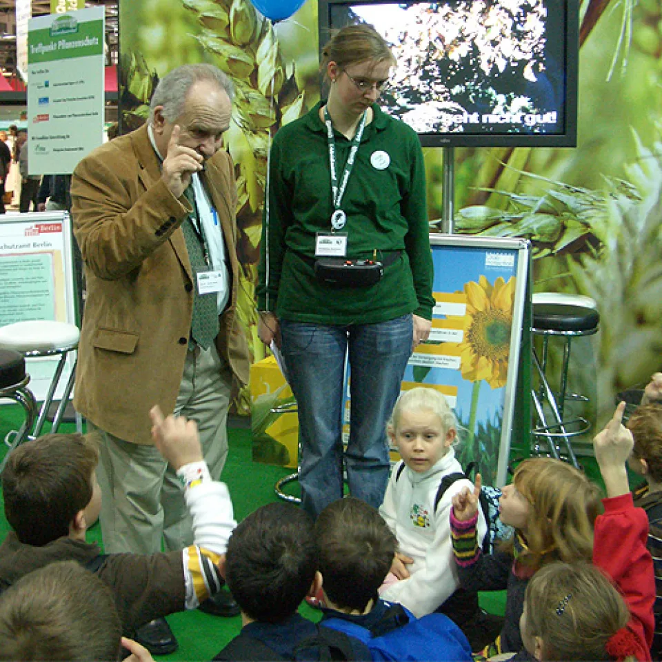 Hochkonzentriert: Berliner Grundschüler im Gespräch mit Dr. Manfred Schroeder am Treffpunkt Pflanzenschutz.