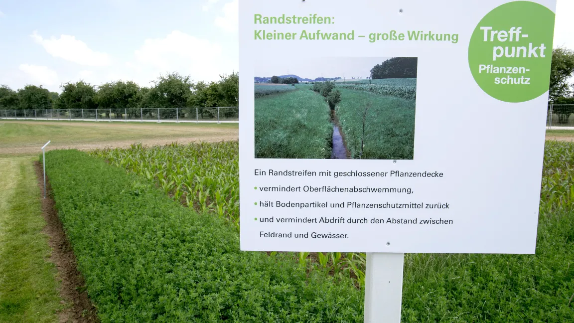 Zum Schutz der Gewässer kann der Landwirt bei der Anwendung von Pflanzenschutzmitteln einen Abstand einhalten, um Drift-Einträge zu vermeiden. Das Anlegen von bewachsenen Randstreifen vermindert den Oberflächenabfluss von Pflanzenschutzmitteln und die Erosion des Bodens.