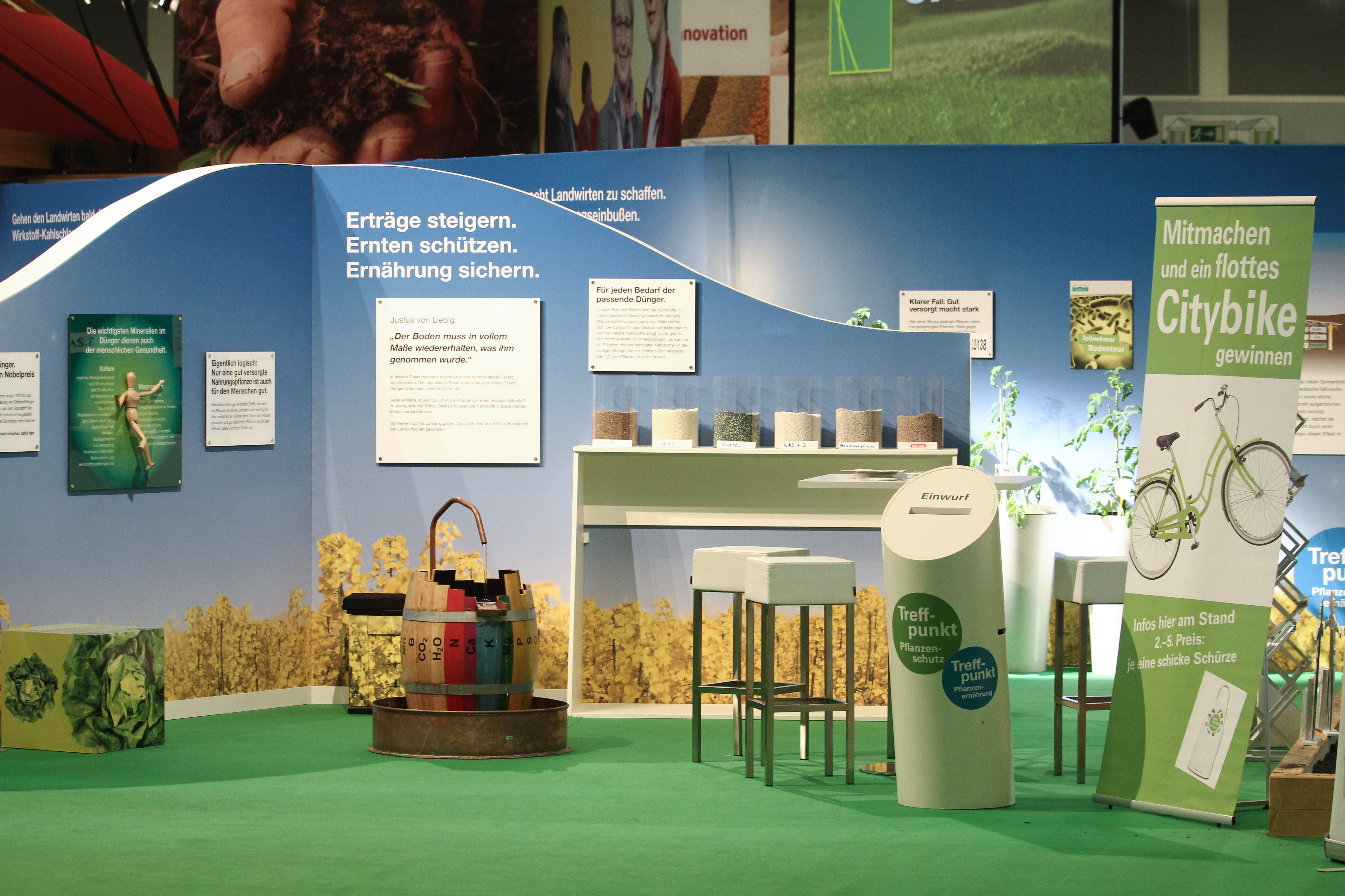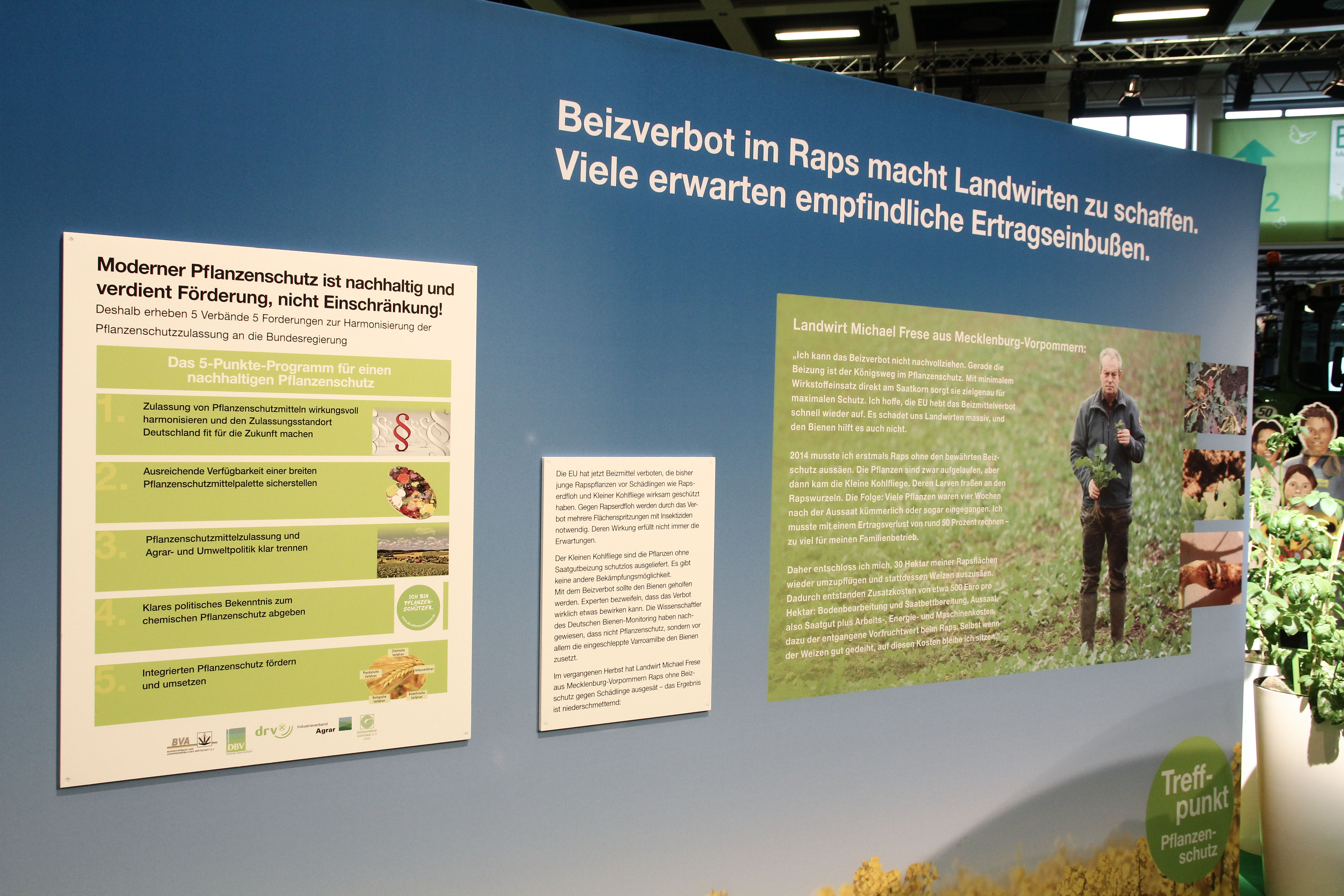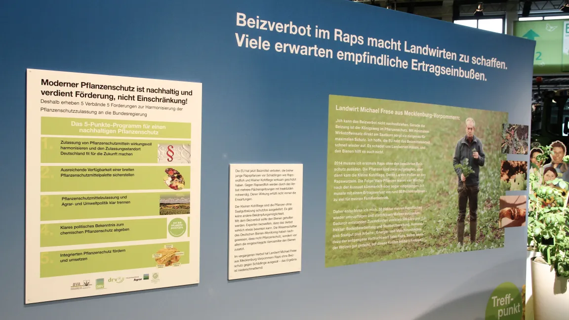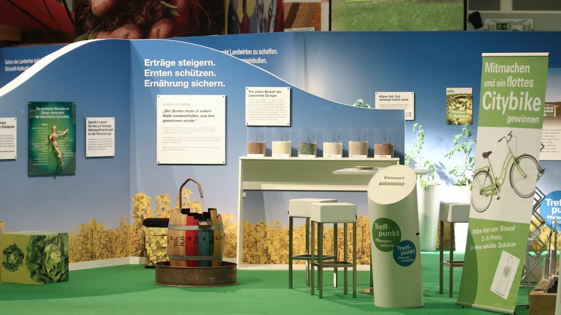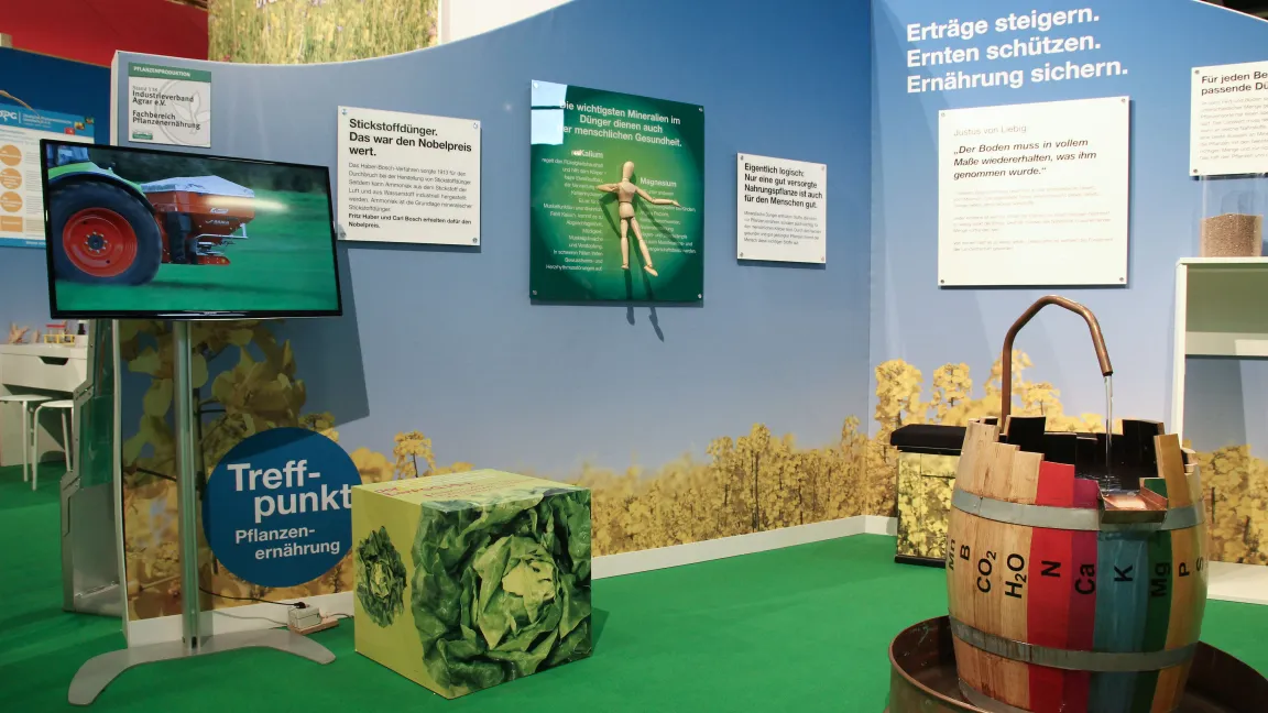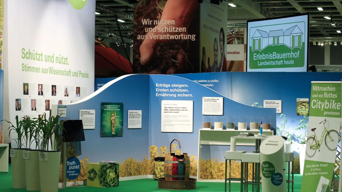 Gemeinsam mit Partnern aus Wissenschaft, Behörden, Beratung, Verbänden, Industrie und Praxis lud der Industrieverband Agrar e. V. (IVA) auch in diesem Jahr wieder zum Dialog. Am "Treffpunkt Pflanzenschutz und Pflanzenernährung" im ErlebnisBauernhof in Halle 3.2 stellten sich Experten kritischen Fragen zur Agrarchemie und dem Austausch mit den Messebesuchern zu den Themen Landwirtschaft, Ernährung, Umwelt- und Klimaschutz sowie den Nutzen von modernem Pflanzenschutz und Mineraldüngung.