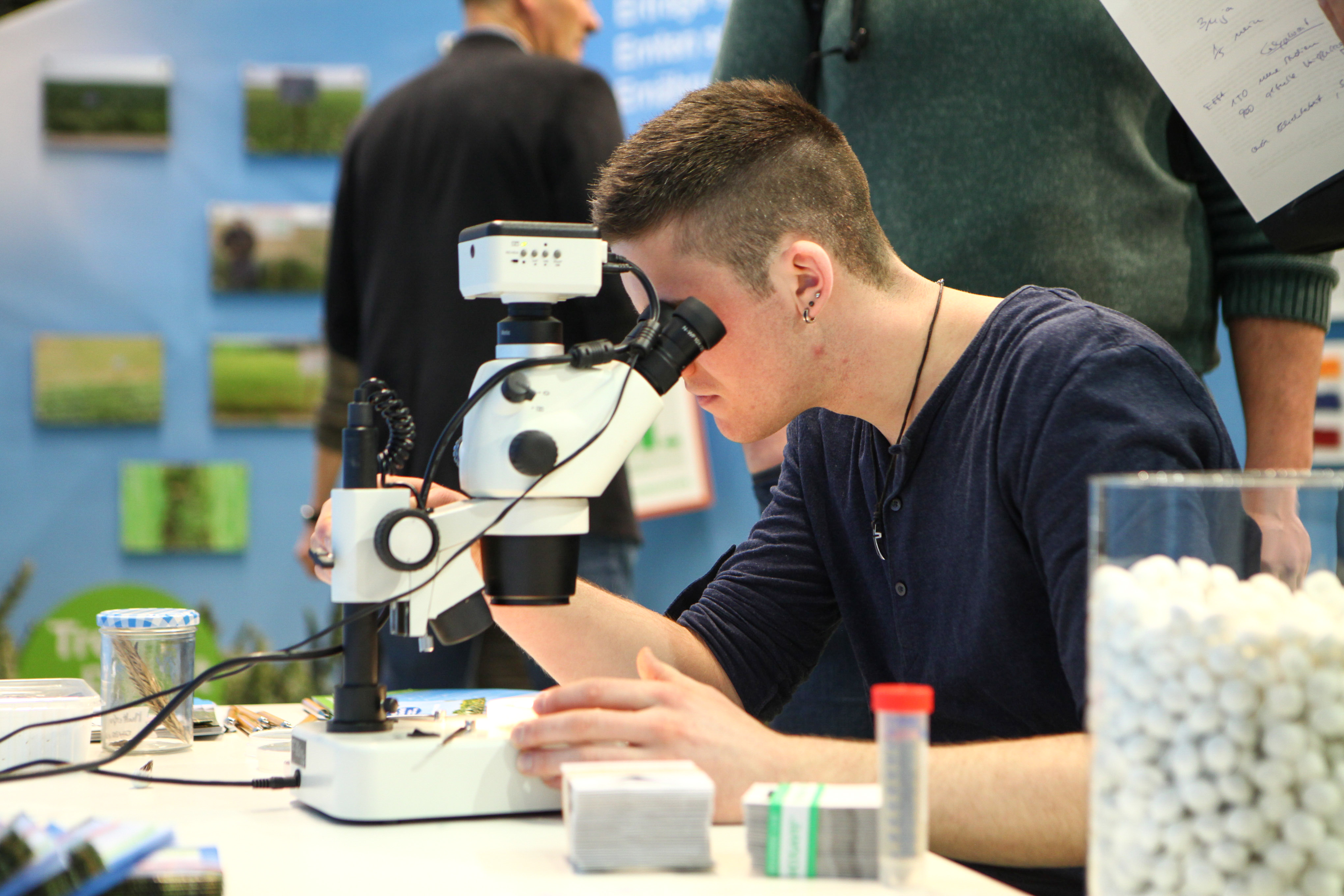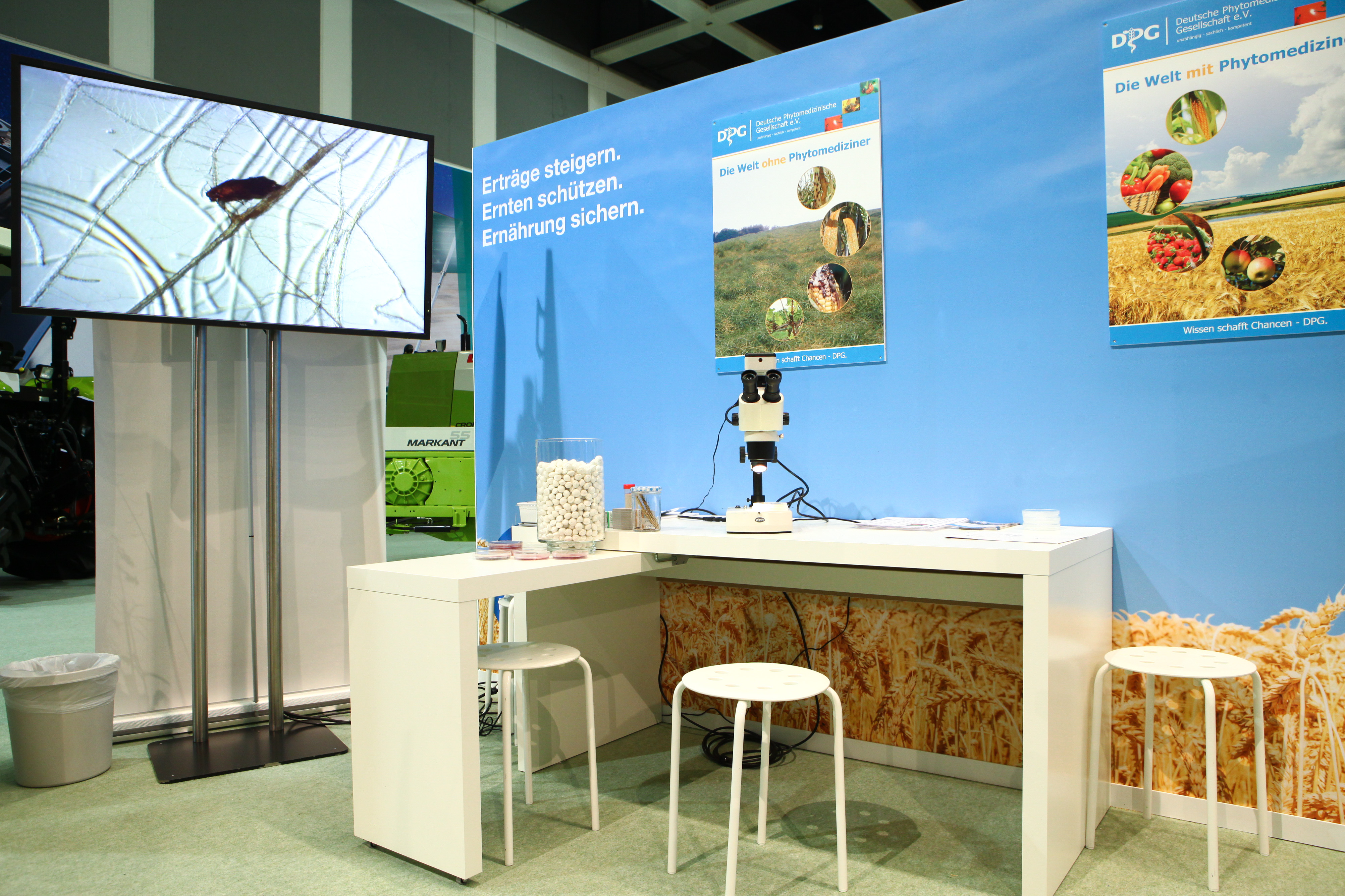 Partner des Treffpunkts 2016 waren wieder die Junioren der Deutschen Phytomedizinischen Gesellschaft (DPG). Die Nachwuchswissenschaftler gaben einen Einblick in die Arbeit als „Pflanzendoktoren“. Sie erklärten, wie Schädlinge und Pilze unseren Nutzpflanzen zusetzen und welche Medizin der Pflanzenschutz in diesen Fällen bereithält. Ein Publikumsmagnet war der Schreibtisch der DPG-Junioren, an dem man durch ein Stereomikroskop Schädlinge wie Speisebohnenkäfer in 40-facher Vergrößerung bei ihrer verheerenden Arbeit beobachten konnte.