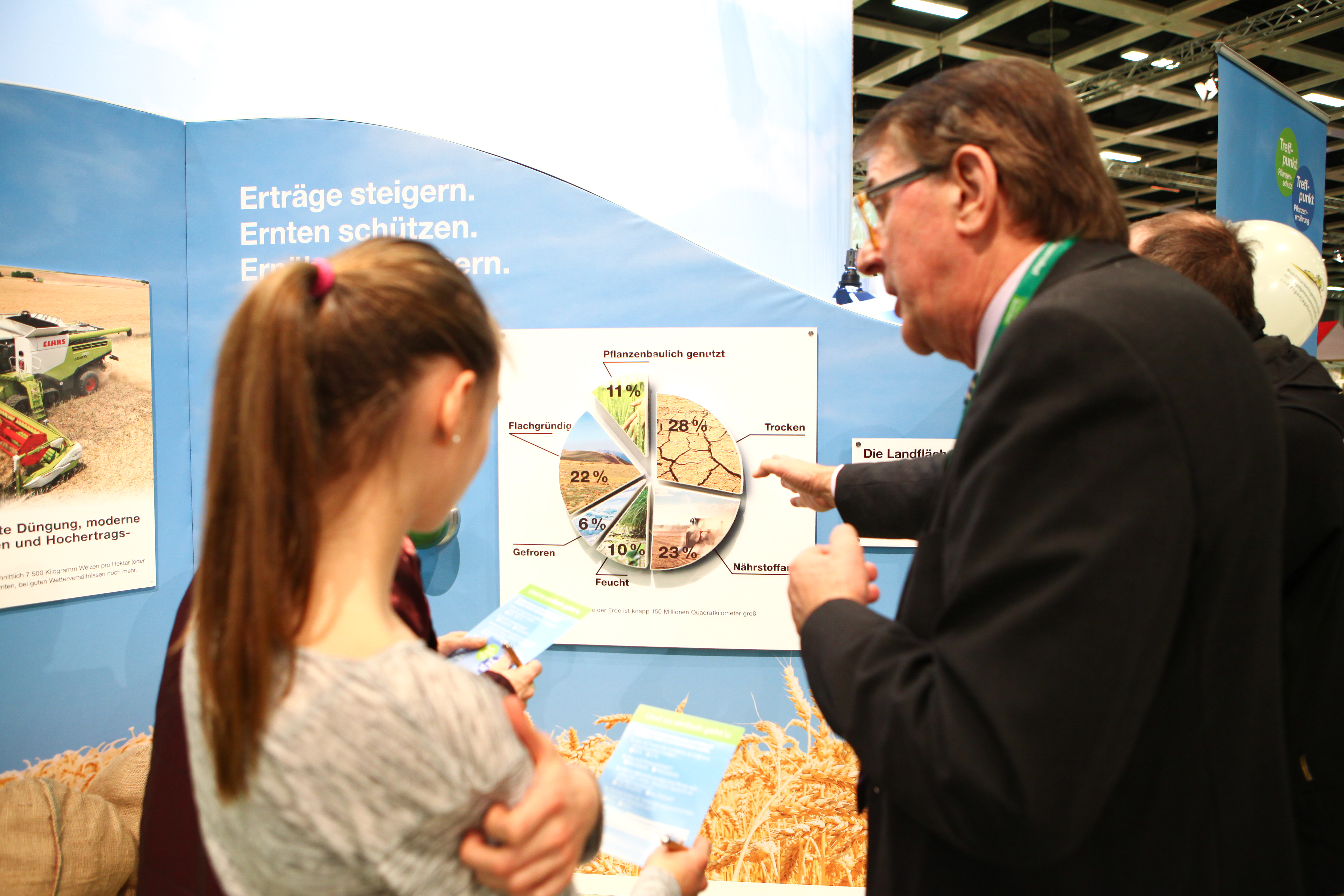 Der Industrieverband Agrar e. V. (IVA) lud wieder zum Dialog auf die Messe. Am „Treffpunkt Pflanzenschutz und Pflanzenernährung“ im ErlebnisBauernhof in Halle 3.2 stellten sich Experten Fragen zur Agrarchemie und dem Austausch mit den Messebesuchern zu Themen wie Rückständen von Pflanzenschutzmitteln in Lebensmitteln, Nutzen von Pflanzenschutz und Mineraldüngung oder dem Einfluss moderner Landwirtschaft auf die Artenvielfalt.