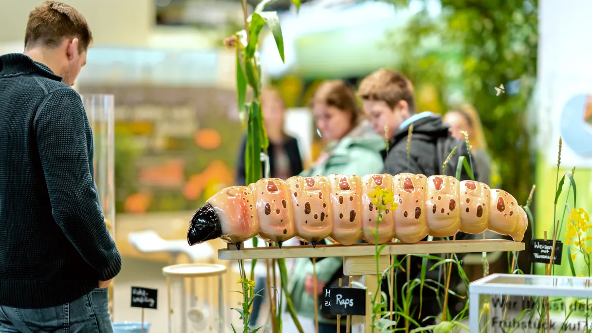 Auf besonders großes Interesse stießen bei Groß und Klein wieder die krabbeligen Standbewohner: Mehlwürmer, Kohlweißling, Blattläuse oder Kornkäfer konnten bei den „Pflanzendoktoren“ der Deutschen Phytomedizinischen Gesellschaft (DPG) ganz genau unter die Lupe genommen werden. Sie unterstützten erneut den Stand mit ihrem Fachwissen und zeigten eindrücklich – an Pflanze und Petrischale –, was verschiedene Pflanzenkrankheiten und Schaderreger anrichten können.